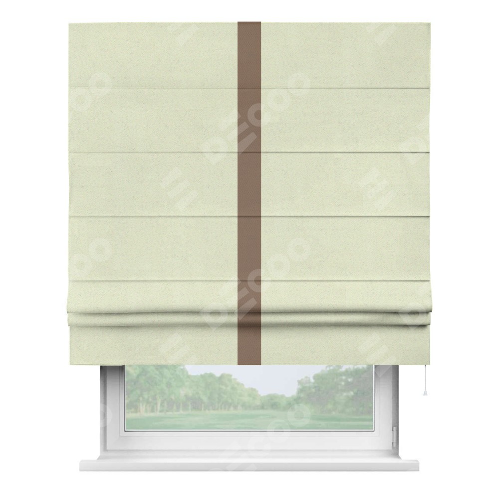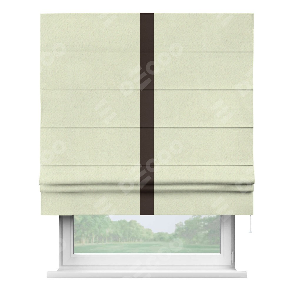 Римская штора производителя «Cortin», используется для проёма, пошита из ткани блэкаут однотонный сливочный, артикул ткани 6668−02. Отделка шторы кантом «Хайвей», ткань для канта используется из блэкаута однотонного разной расцветки на выбор. Имеет универсальный механизм и подходит для монтажа: на потолок, на стену и в нишу.