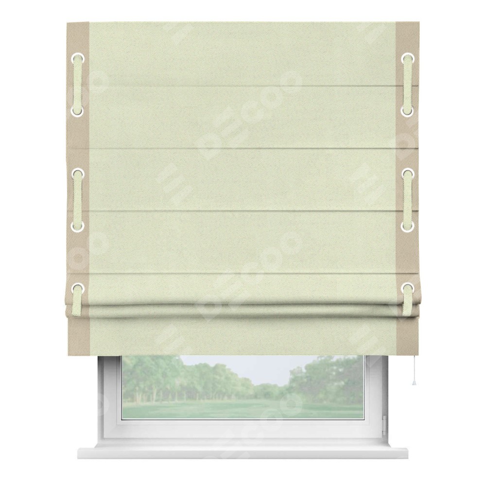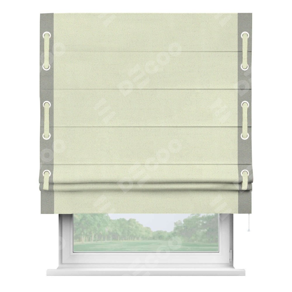 Римская штора «Кортин» с кантом Стрим Дуо (люверсы с пояском), для проема, ткань блэкаут однотонный сливочный
