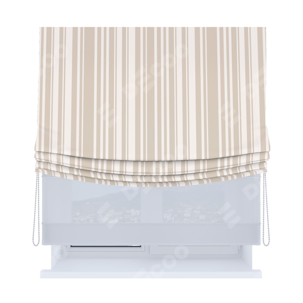 Римская штора «Кортин», день-ночь с мягкими складками, «Бежевые вертикальные полоски»