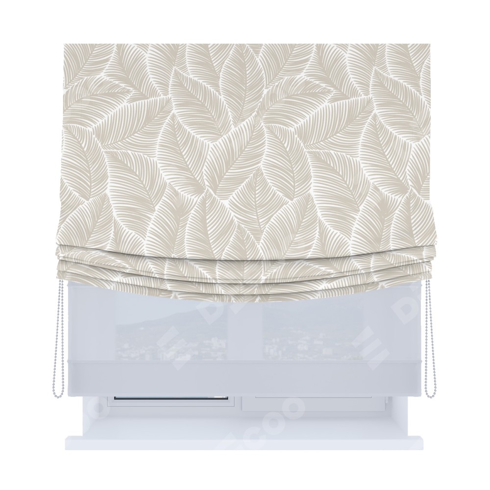 Римская штора «Кортин», день-ночь с мягкими складками, «Бежевые листья»