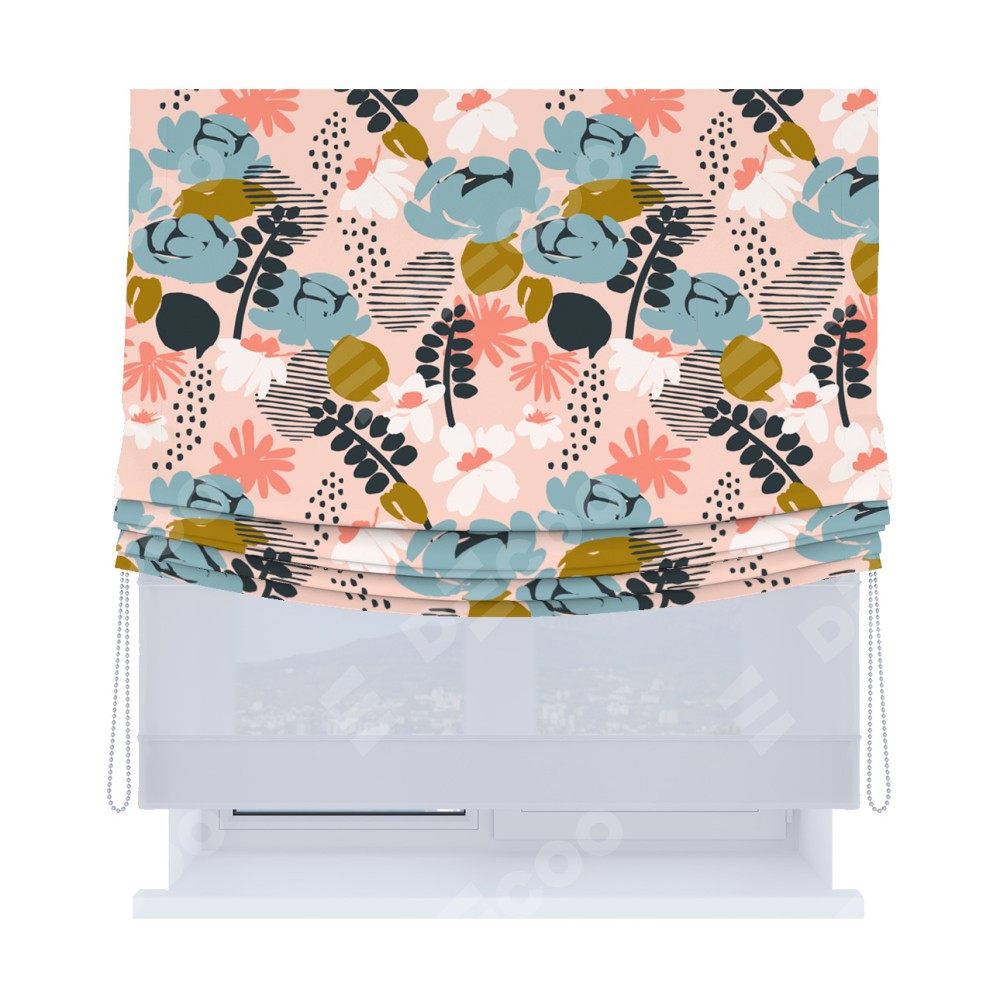 Римская штора «Кортин», день-ночь с мягкими складками, «Дивные цветы»