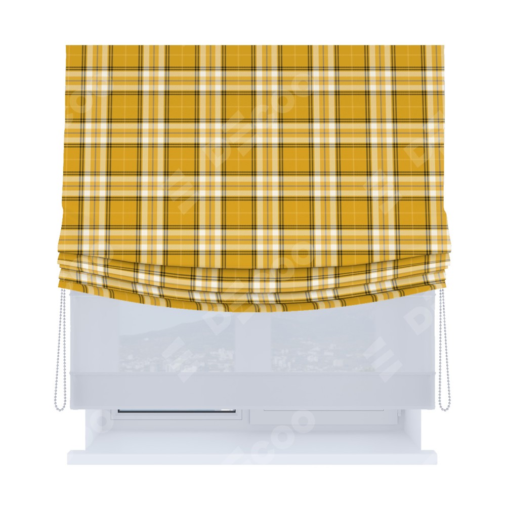 Римская штора «Кортин», день-ночь с мягкими складками, «Желто-горчичная клетка»