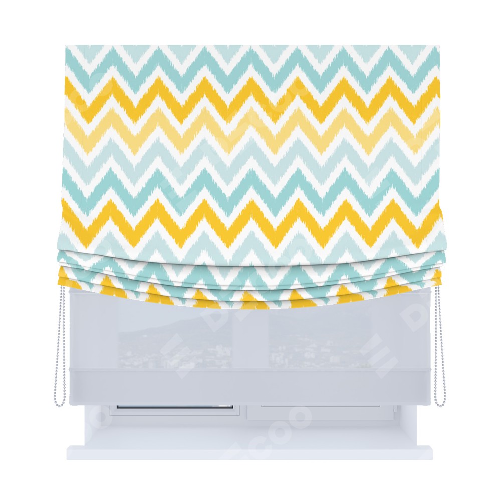 Римская штора «Кортин», день-ночь с мягкими складками, «Икат шеврон»