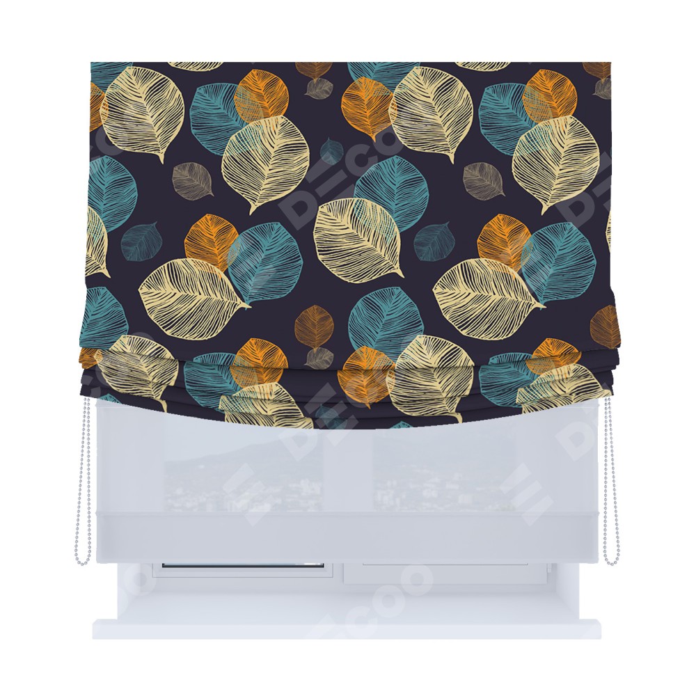 Римская штора «Кортин», день-ночь с мягкими складками, «Листья в ночи»