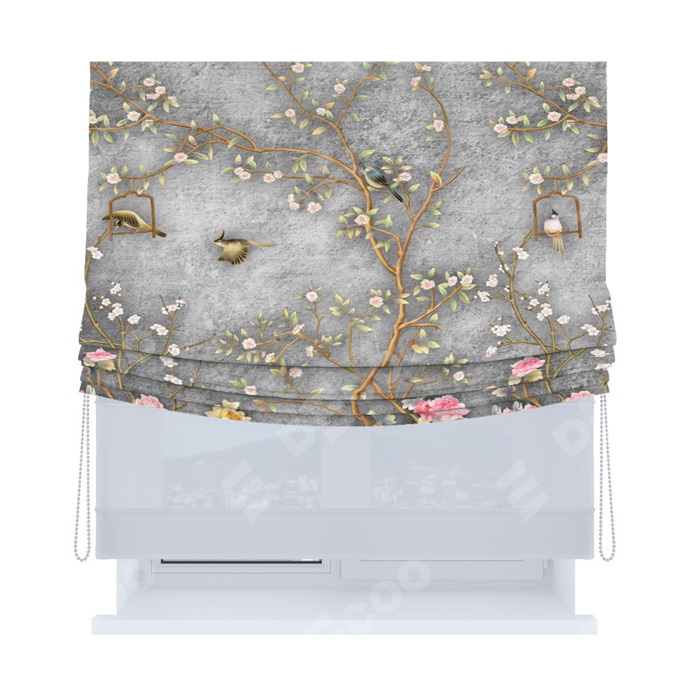 Римская штора «Кортин», день-ночь с мягкими складками, «Прелестный сад»