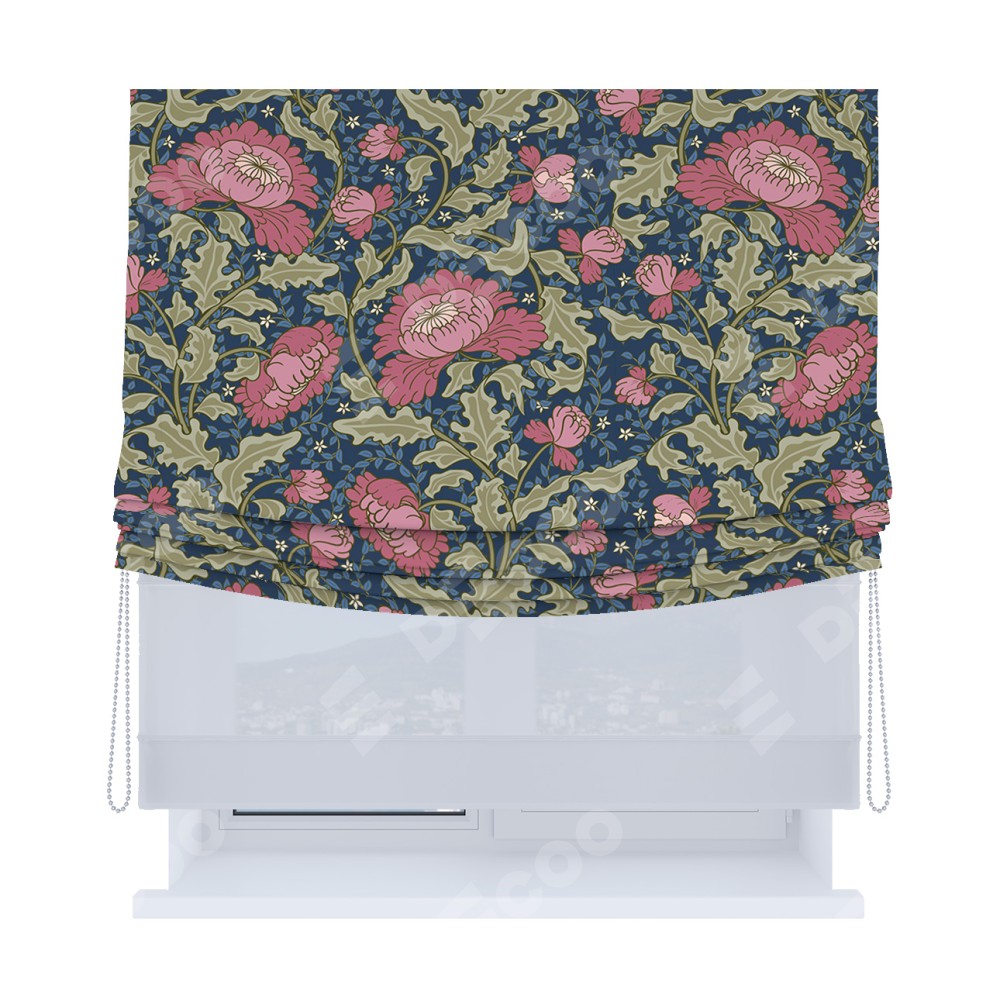Римская штора «Кортин», день-ночь с мягкими складками, «Розовые цветы»