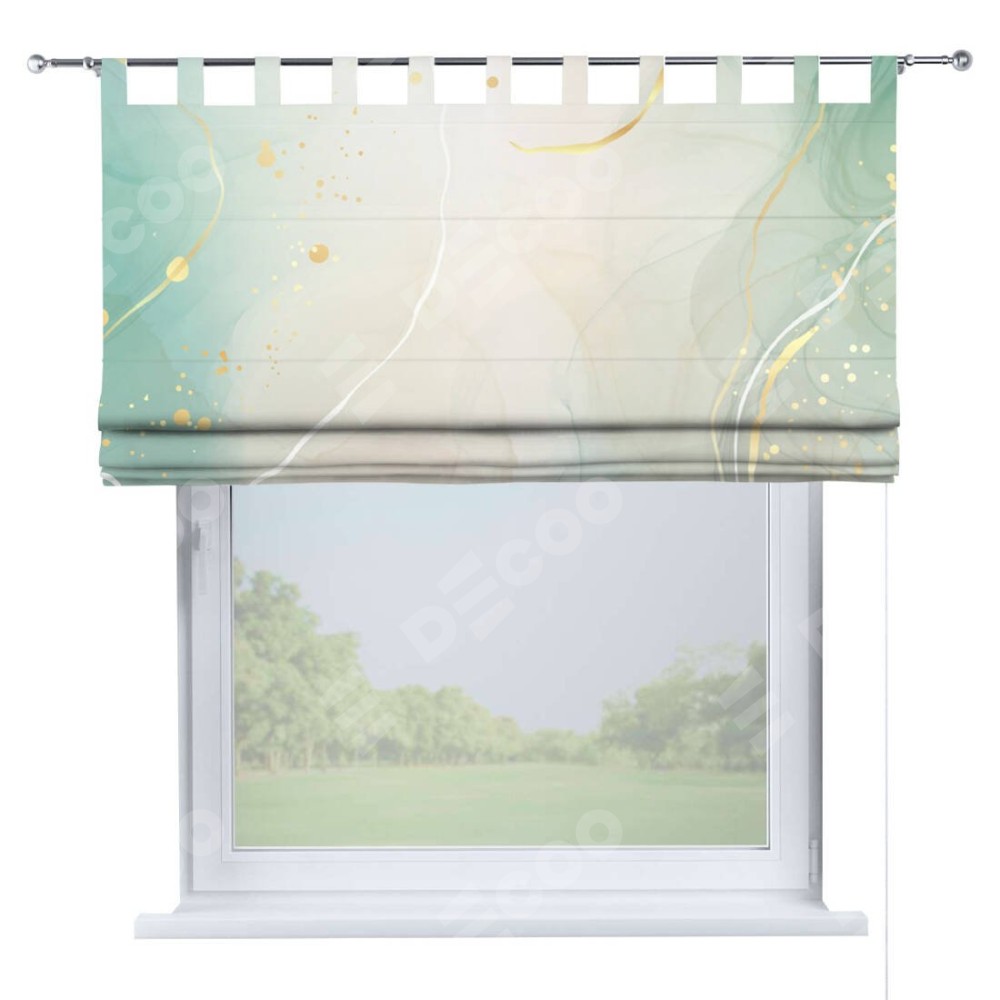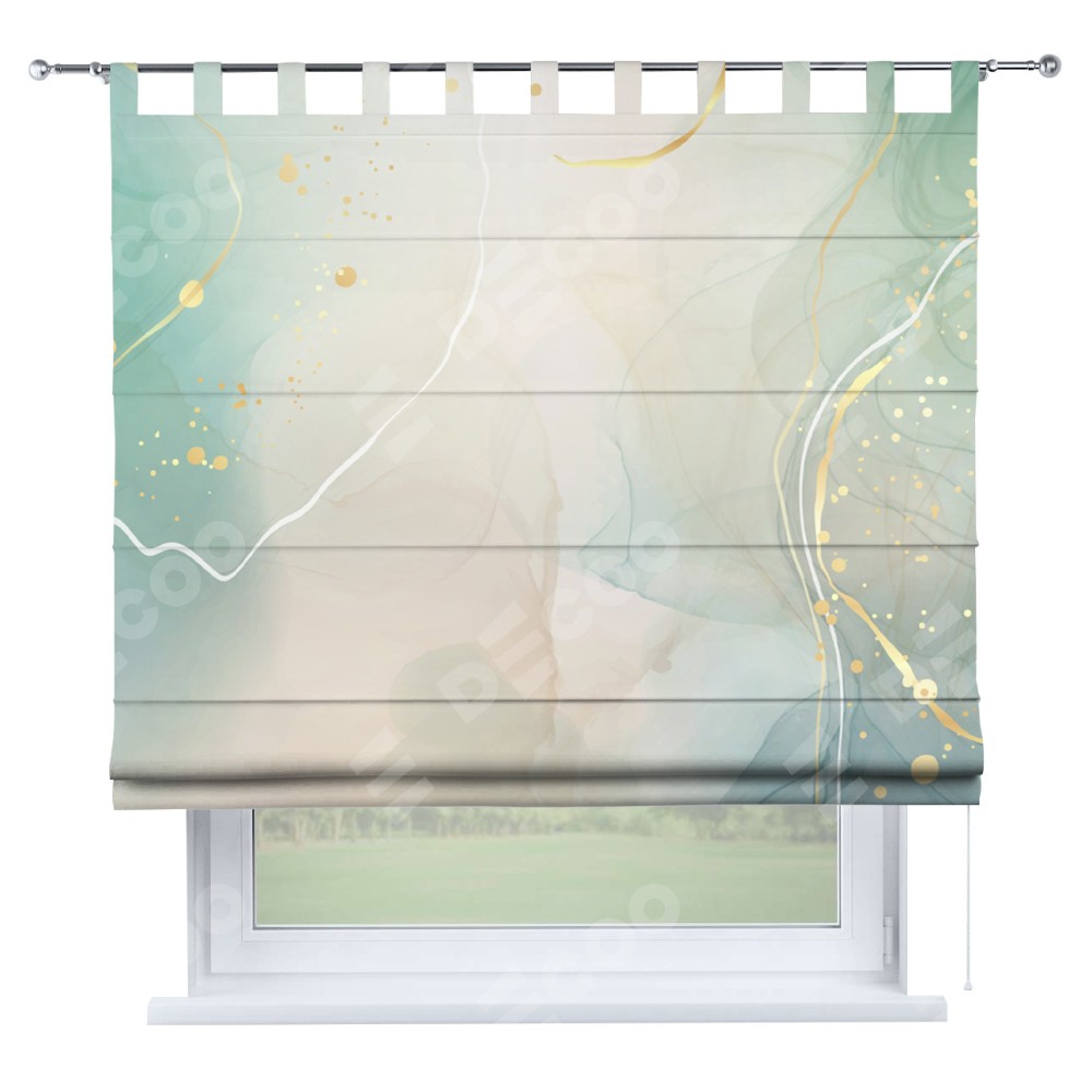 Римская штора производителя «Cortin», используется для проёма, пошита из ткани блэкаут с нанесением сублимационной печати «Изумрудно-серый мрамор». Данная модель пошита на петлях, комплектуется на выбор круглым карнизом и подходит для монтажа на стену. Римская штора на петлях имеет простую систему регулировки высоты, отличительным преимуществом данной модели является простой способ монтажа. Достаточно повесить ее на трубу и штора готова!