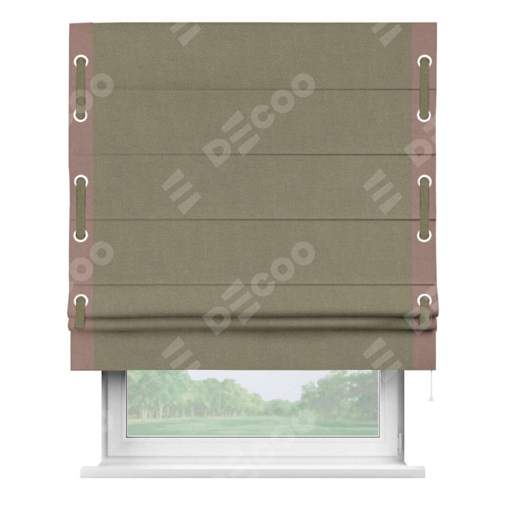 Римская штора «Кортин» с кантом Стрим Дуо (люверсы с пояском), для проема, лён блэкаут бежевый