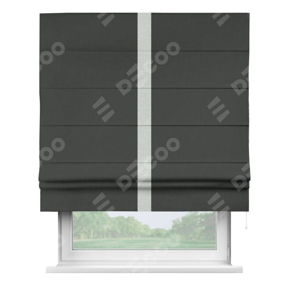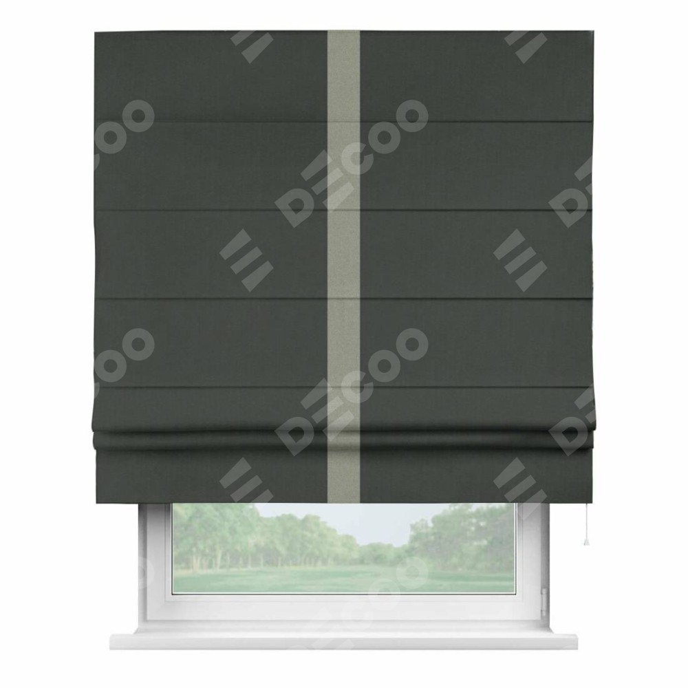 Римская штора «Кортин» с кантом Хайвэй, для проема, лён блэкаут графит