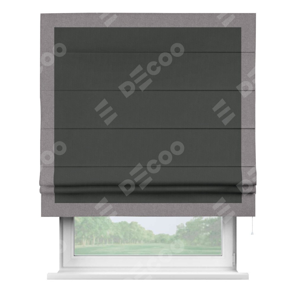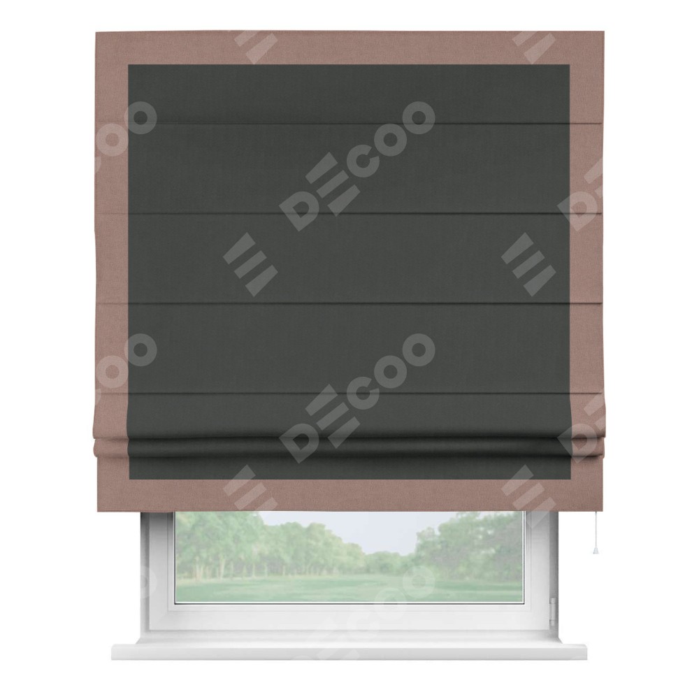 Римская штора «Кортин» с кантом Чесс, для проема, лён блэкаут графит