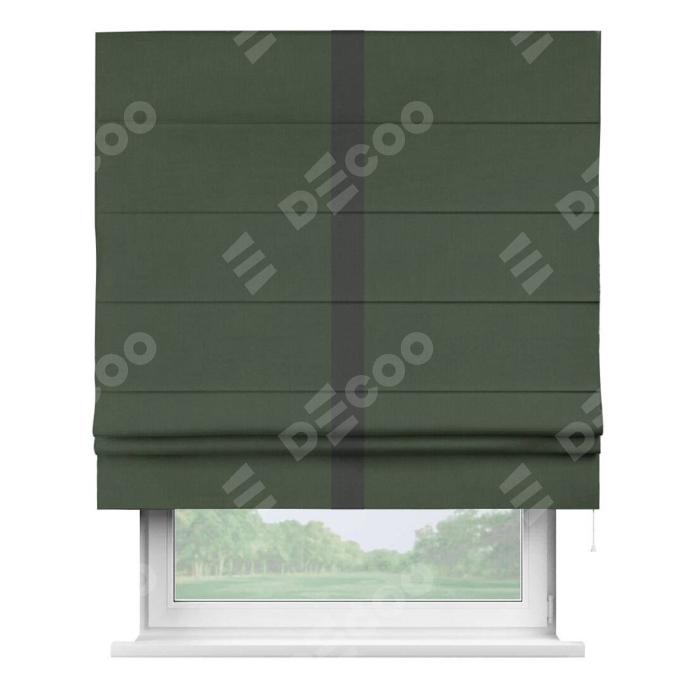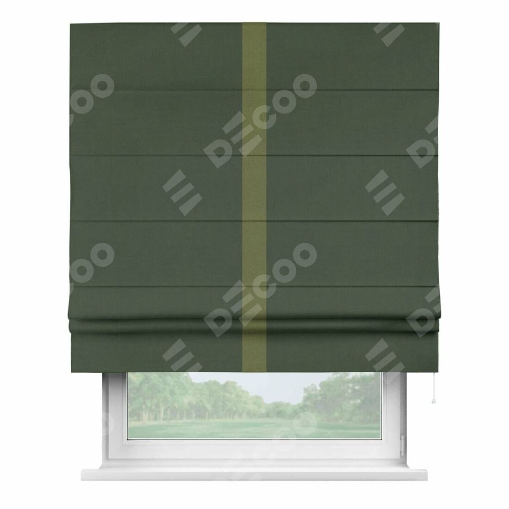 Римская штора «Кортин» с кантом Хайвэй, для проема, лён блэкаут зелёный
