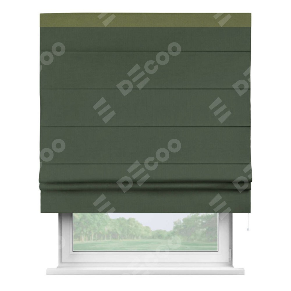 Римская штора «Кортин» с кантом Кинг, для проема, лён блэкаут зелёный