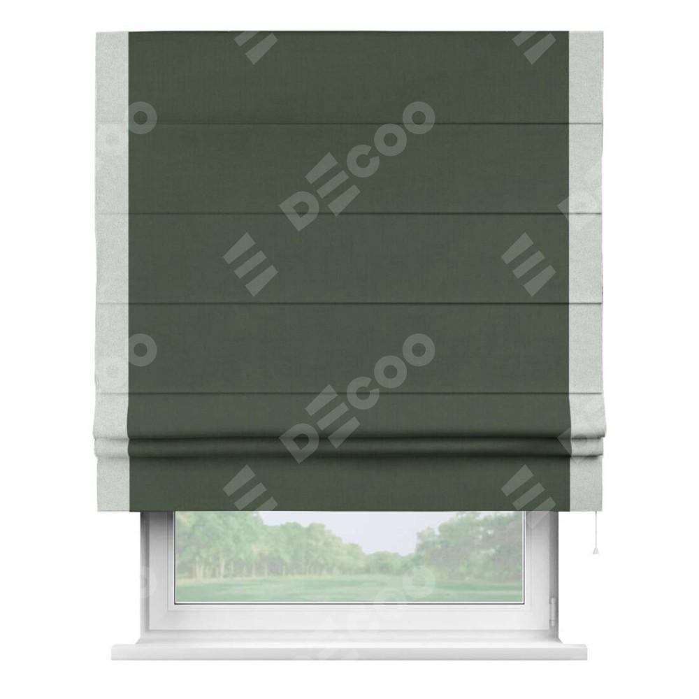 Римская штора «Кортин» с кантом Стрим Дуо, для проема, лён блэкаут зелёный