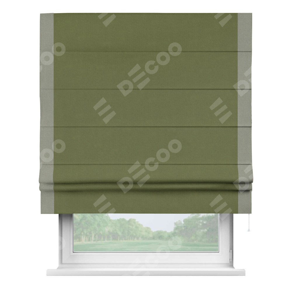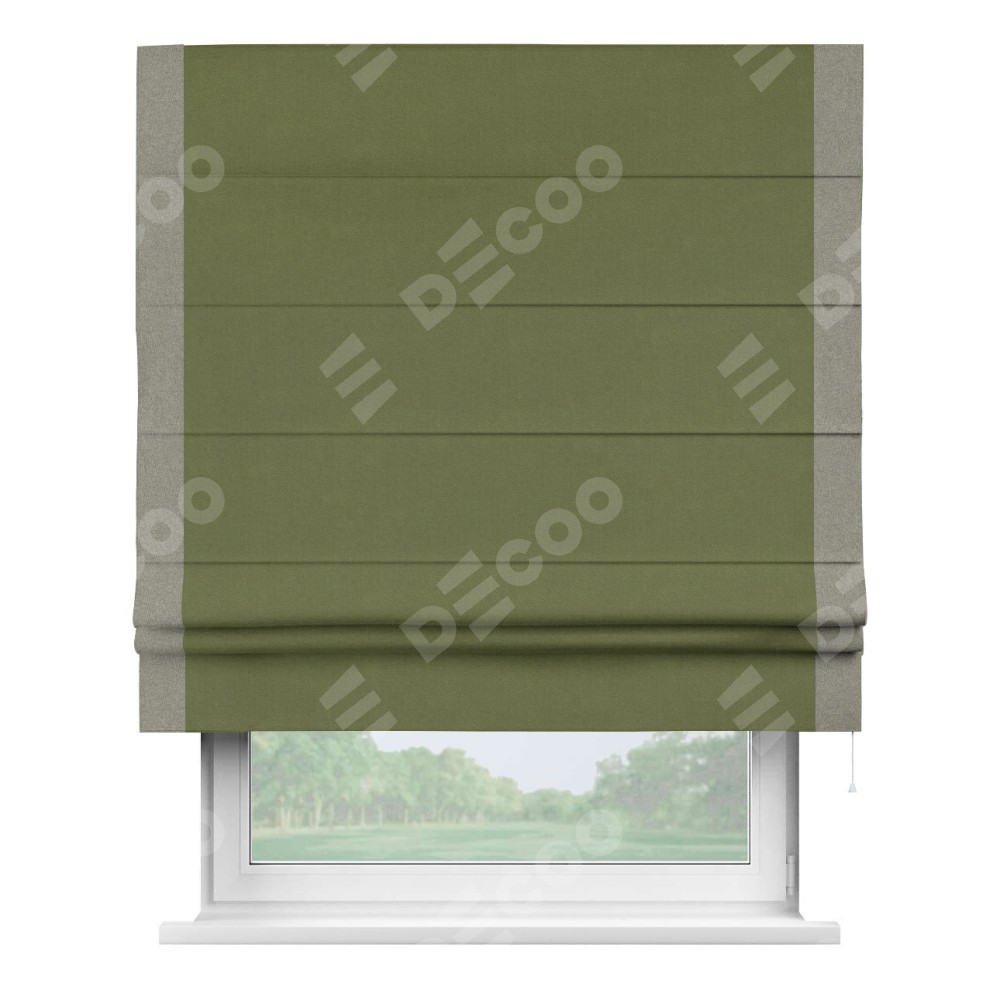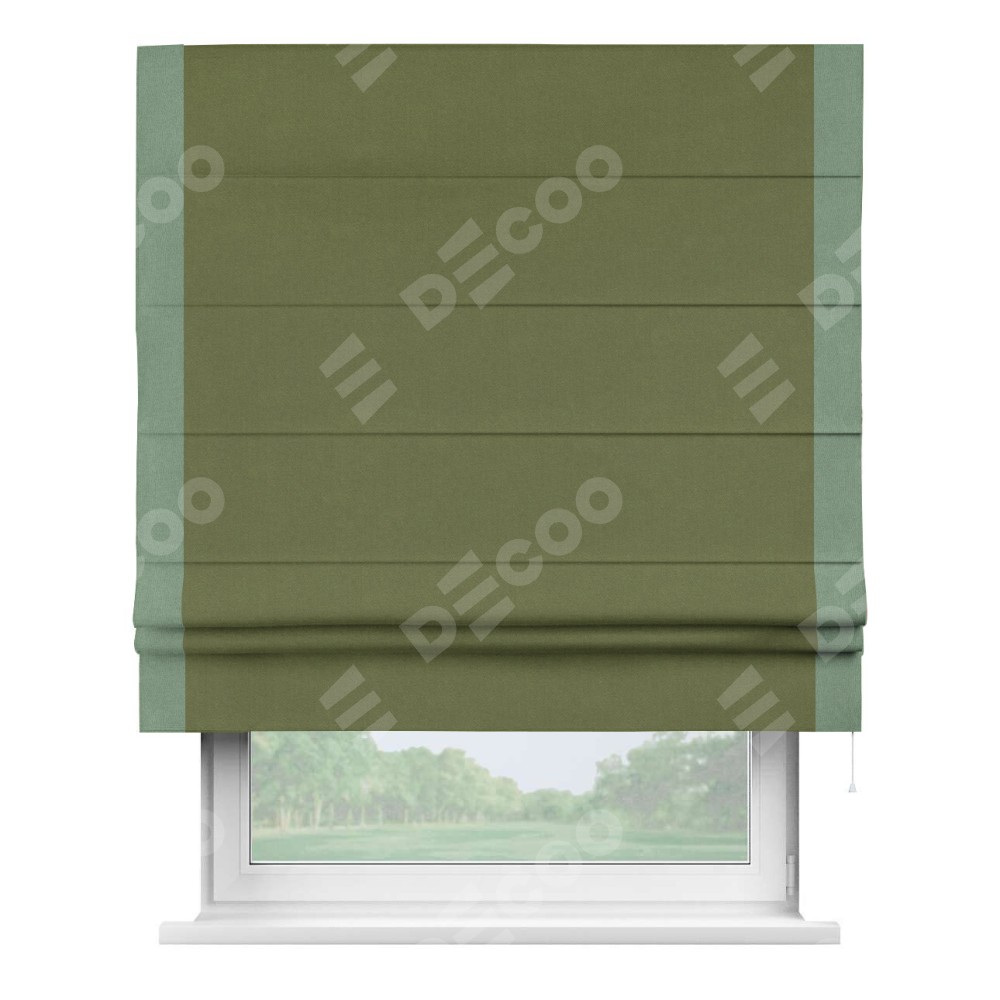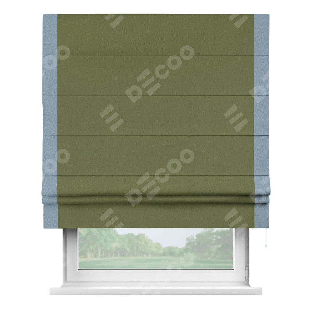 Римская штора «Кортин» с кантом Стрим Дуо, для проема, лён блэкаут оливковый