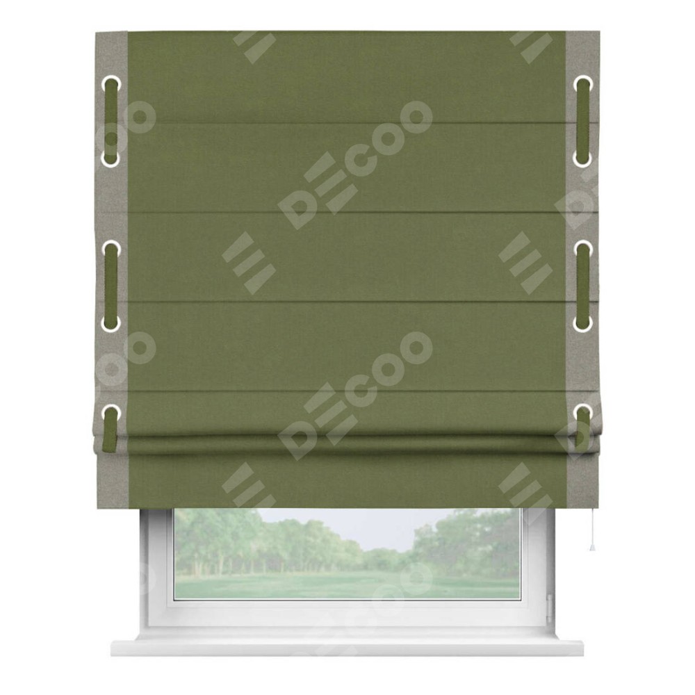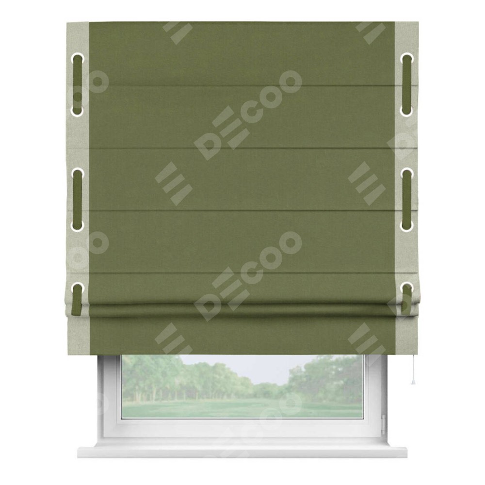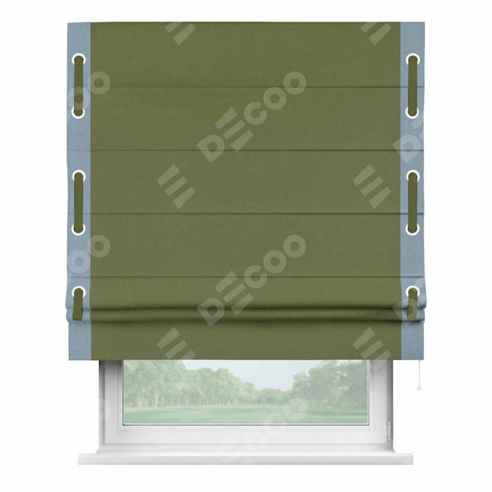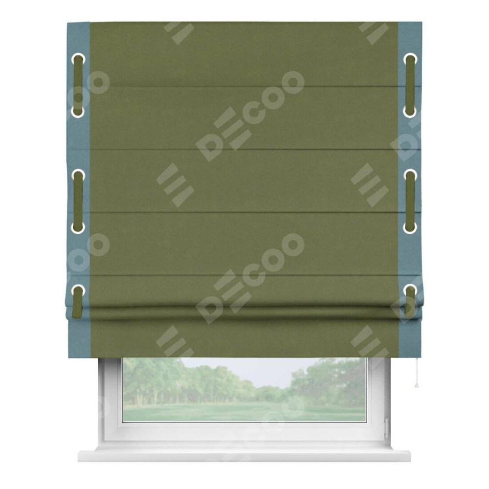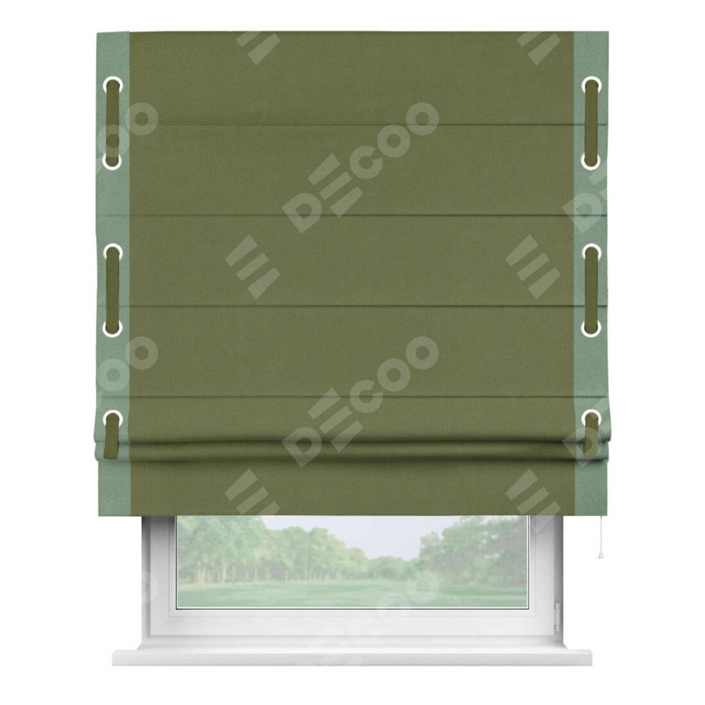 Римская штора «Кортин» с кантом Стрим Дуо (люверсы с пояском), для проема, лён блэкаут оливковый