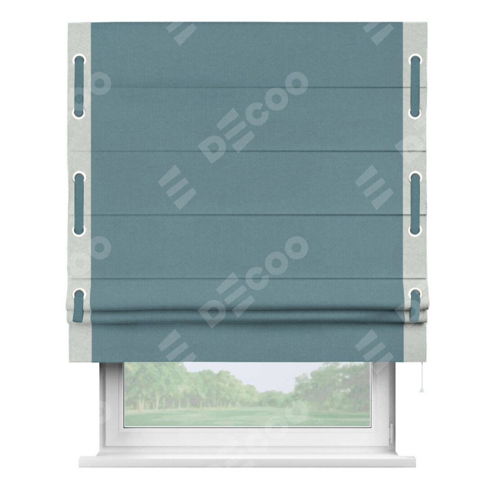 Римская штора «Кортин» с кантом Стрим Дуо (люверсы с пояском), для проема, лён блэкаут синий