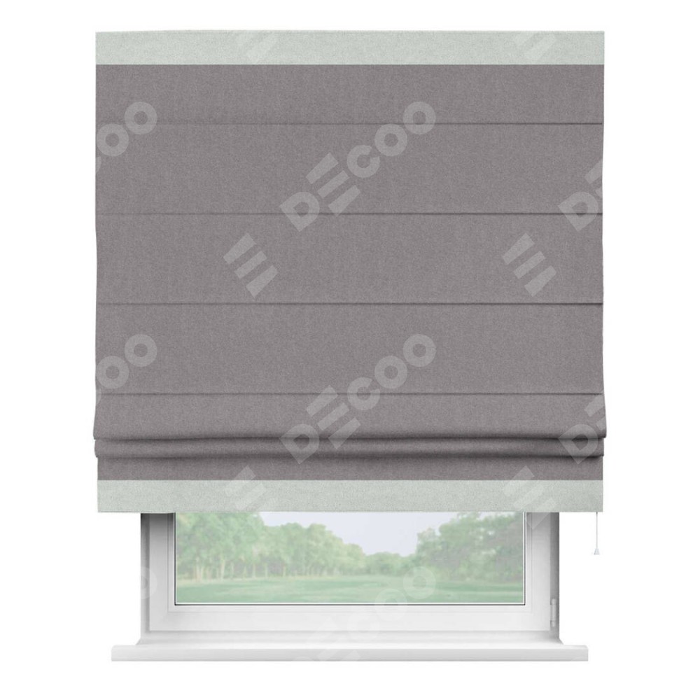 Римская штора производителя «Cortin», используется для проёма, пошита из ткани лён блэкаут сиреневый, артикул 69576. Отделка шторы кантом «Горизонт», ткань для канта используется из льна разной расцветки на выбор. Имеет универсальный механизм и подходит для монтажа: на потолок, на стену и в нишу.