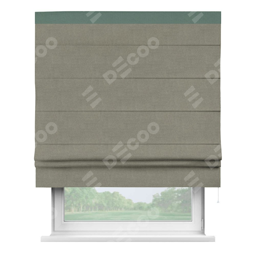 Римская штора производителя «Cortin», используется для проёма, пошита из ткани лён блэкаут шампань, артикул 69449. Отделка шторы кантом «Кинг», ткань для канта используется из льна разной расцветки на выбор. Имеет универсальный механизм и подходит для монтажа: на потолок, на стену и в нишу.