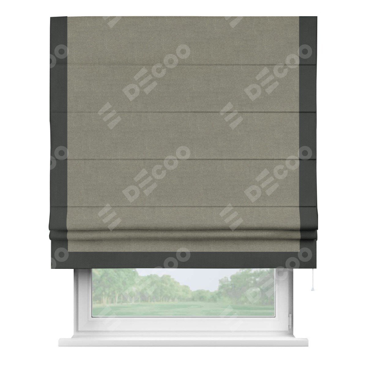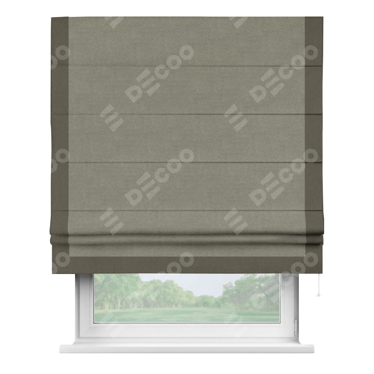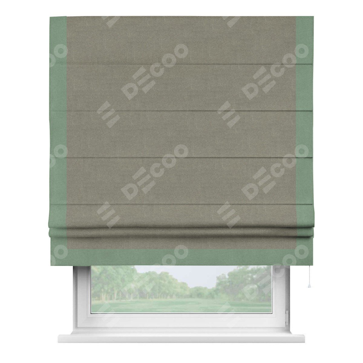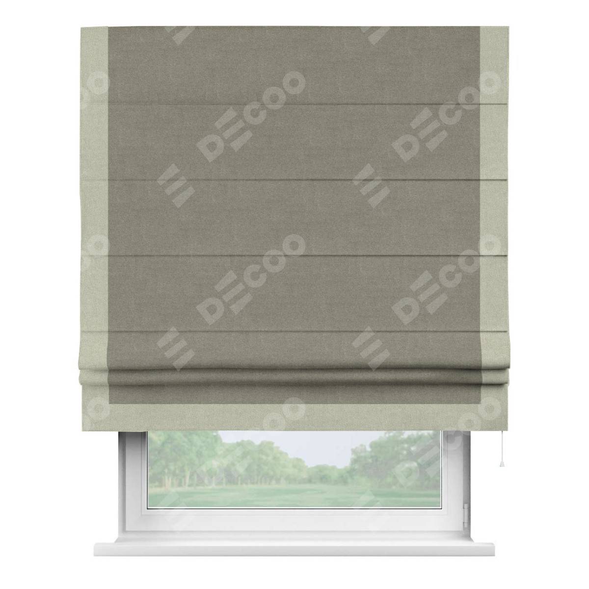 Римская штора производителя «Cortin», используется для проёма, пошита из ткани лён блэкаут шампань, артикул 69449. Отделка шторы кантом «Виктория», ткань для канта используется из льна разной расцветки на выбор. Имеет универсальный механизм и подходит для монтажа: на потолок, на стену и в нишу.