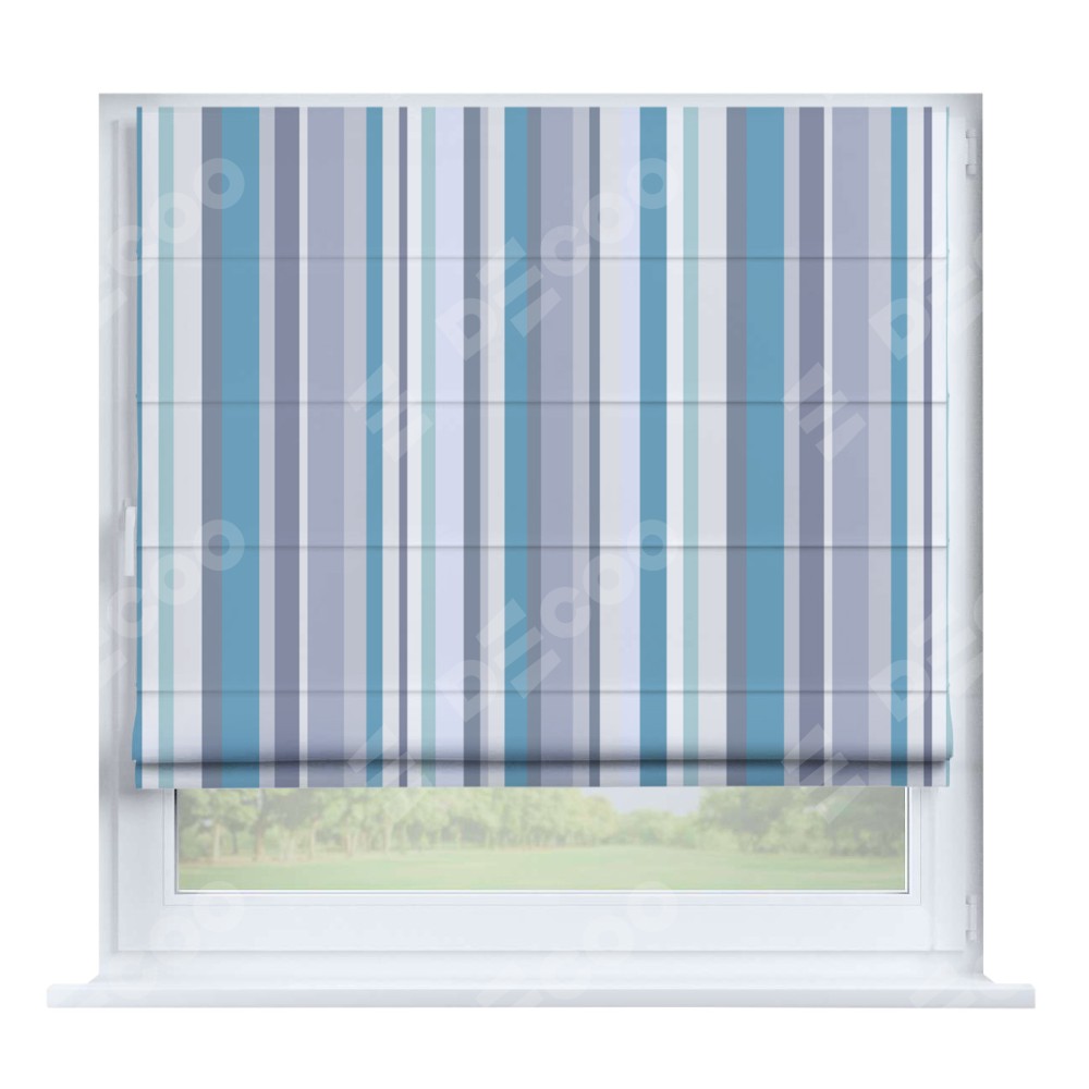 Римская штора производителя «Cortin», устанавливается на створку окна, пошита из ткани блэкаут с нанесением сублимационной печати «Морские линии». Штора шьётся по индивидуальным размерам, для данного типа римской шторы возможная ширина от 35 до 150 см., высота до 250 см.