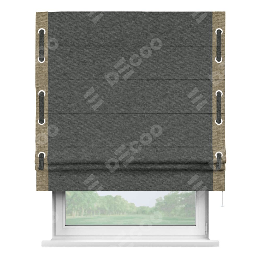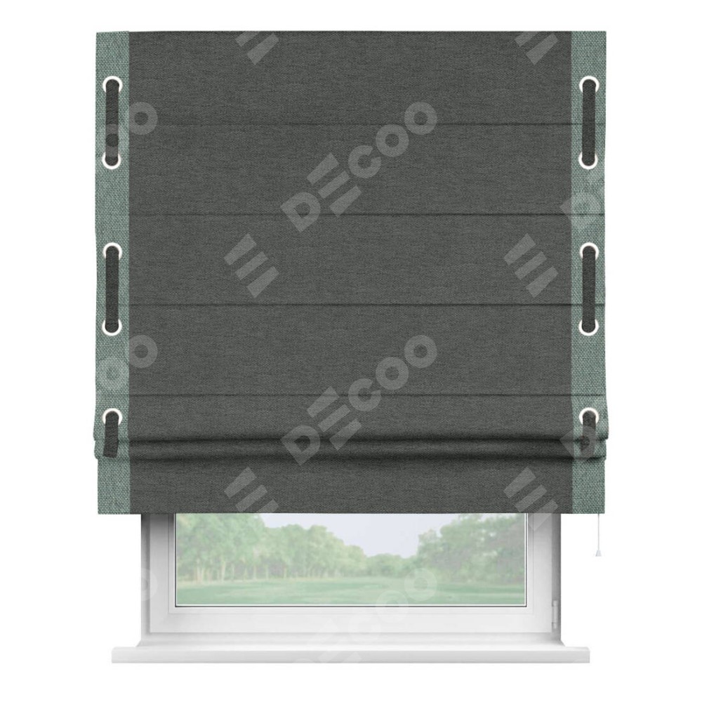 Римская штора «Кортин» с кантом Стрим Дуо (люверсы с пояском), для проема, ткань стиф димаут графит