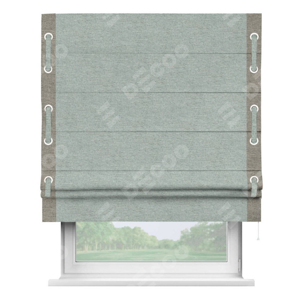 Римская штора «Кортин» с кантом Стрим Дуо (люверсы с пояском), для проема, ткань стиф димаут светло-серый