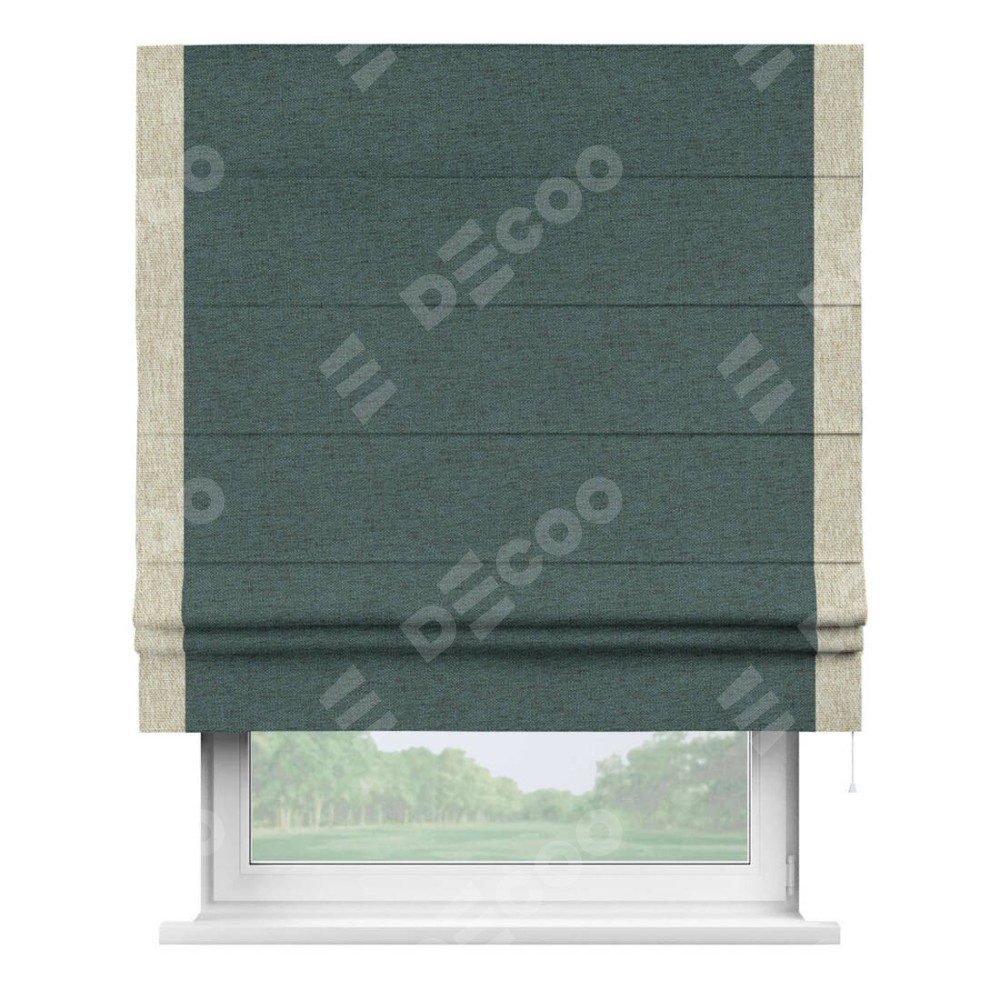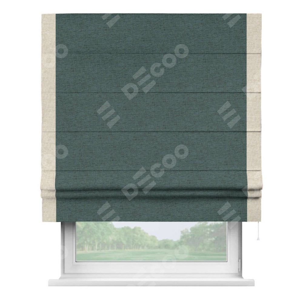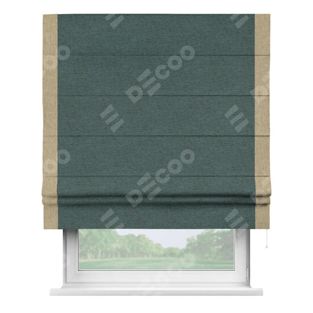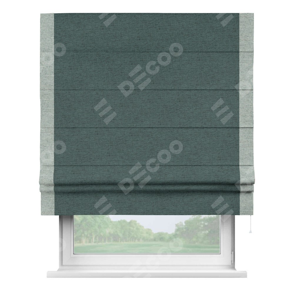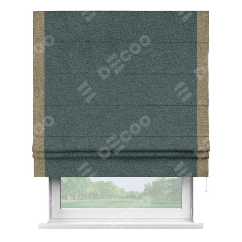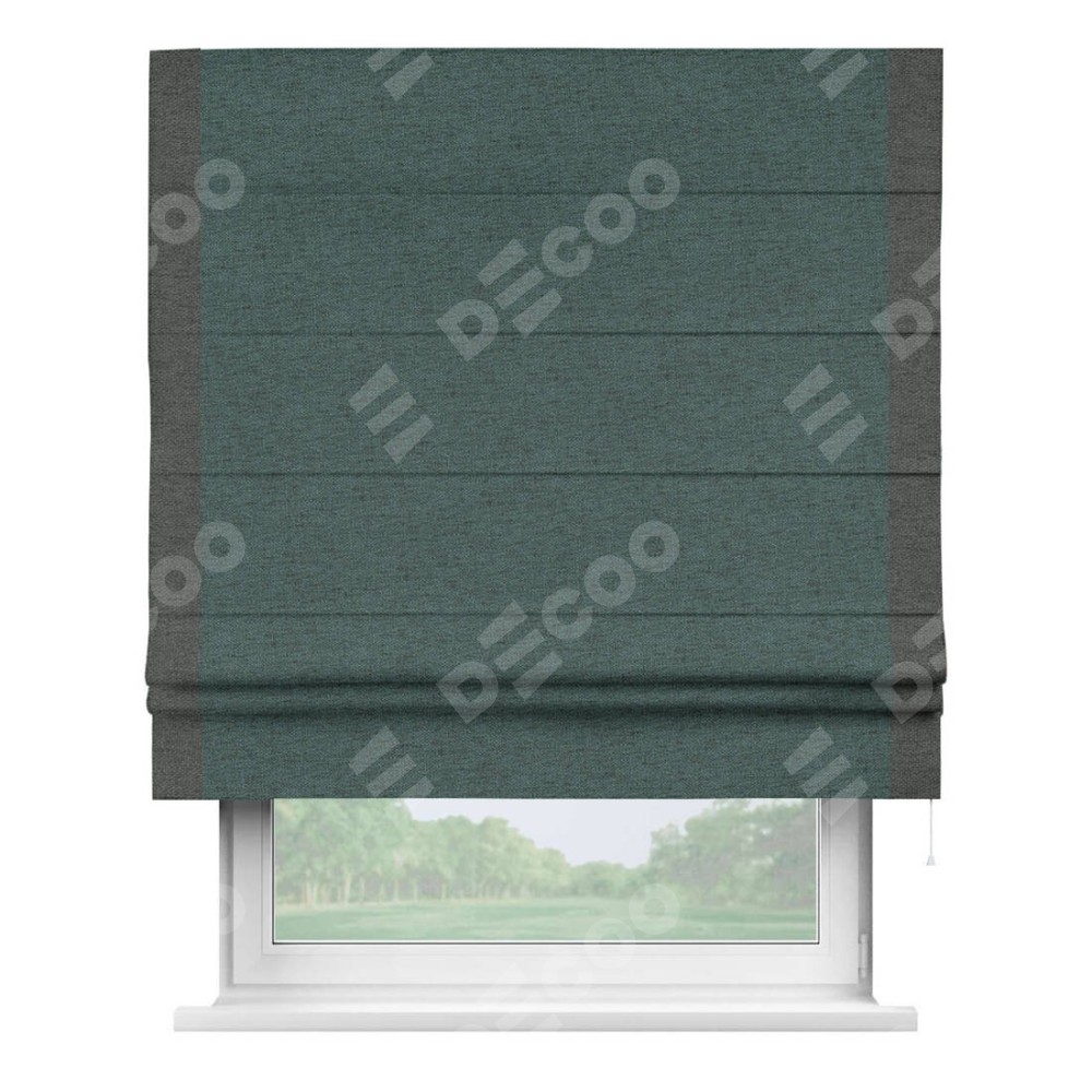 Римская штора «Кортин» с кантом Стрим Дуо, для проема, ткань стиф димаут сине-зелёный