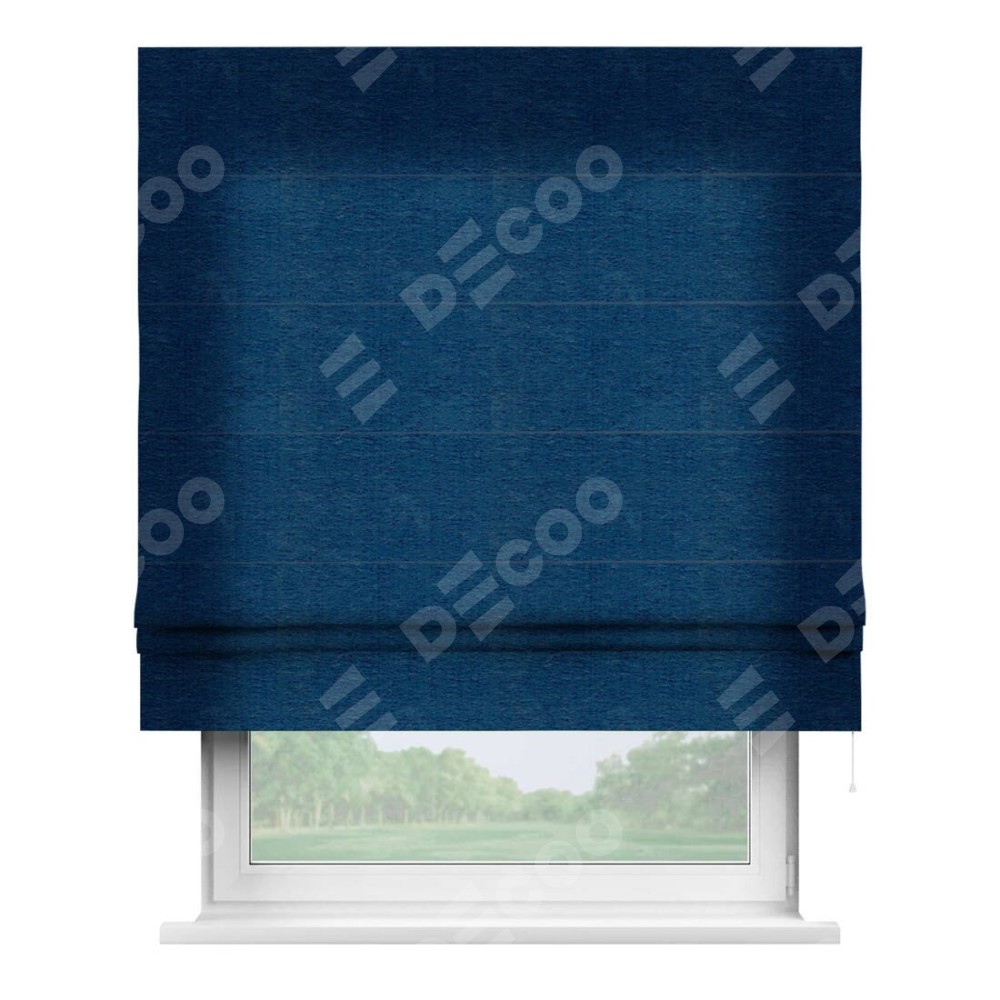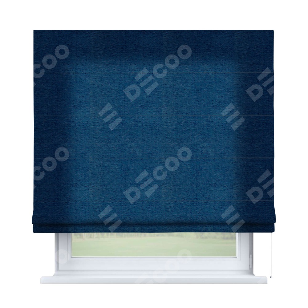Римская штора производителя «Cortin», используется для проёма, пошита из ткани софт однотонный синий, артикул ткани 42937. Имеет универсальный механизм и подходит для монтажа: на потолок, на стену и в нишу.