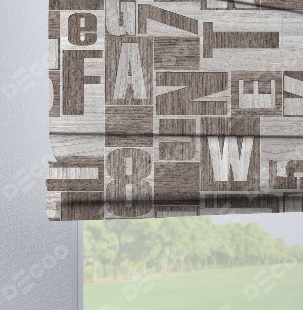 Римская штора производителя «Cortin», используется для проёма, пошита из ткани блэкаут с нанесением сублимационной печати «Литеры лофт». Данная модель пошита на петлях, комплектуется на выбор круглым карнизом и подходит для монтажа на стену. Римская штора на петлях имеет простую систему регулировки высоты, отличительным преимуществом данной модели является простой способ монтажа. Достаточно повесить ее на трубу и штора готова!