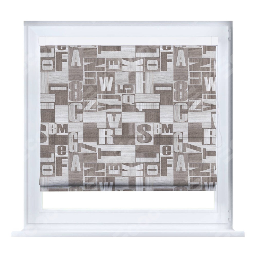 Римская штора производителя «Cortin», устанавливается на створку окна, пошита из ткани блэкаут с нанесением сублимационной печати «Литеры лофт». Штора шьётся по индивидуальным размерам, для данного типа римской шторы возможная ширина от 35 до 150 см., высота до 250 см.