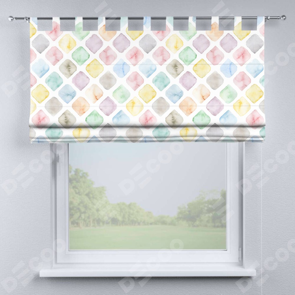 Римская штора производителя «Cortin», используется для проёма, пошита из ткани блэкаут с нанесением сублимационной печати «Мозаика акварель». Данная модель пошита на петлях, комплектуется на выбор круглым карнизом и подходит для монтажа на стену. Римская штора на петлях имеет простую систему регулировки высоты, отличительным преимуществом данной модели является простой способ монтажа. Достаточно повесить ее на трубу и штора готова!
