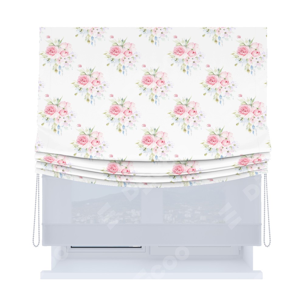Римская штора «Кортин», день-ночь с мягкими складками, «Нежный розарий»