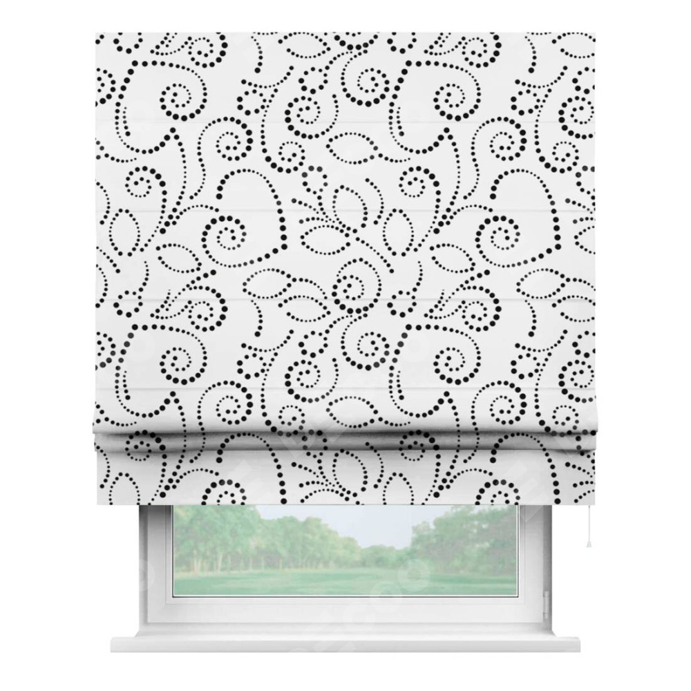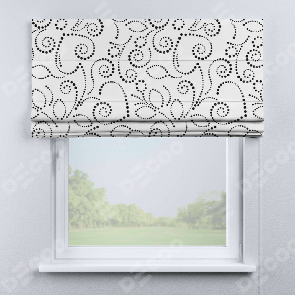 Римская штора производителя «Cortin», используется для проёма, пошита из ткани блэкаут с нанесением сублимационной печати «Точечный узор». Имеет универсальный механизм и подходит для монтажа: на потолок, на стену и в нишу.