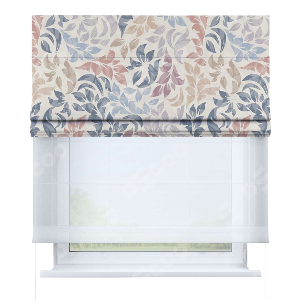 Римская штора день-ночь производителя «Cortin», используется для проёма, пошита из двух полотен, с лицевой блэкаут с нанесением сублимационной печати «Цветочная аура», вторая ткань тюль (по стандарту комплектуется тюль белого цвета артикул V-01). Имеет универсальный механизм и подходит для монтажа: на потолок, на стену и в нишу.