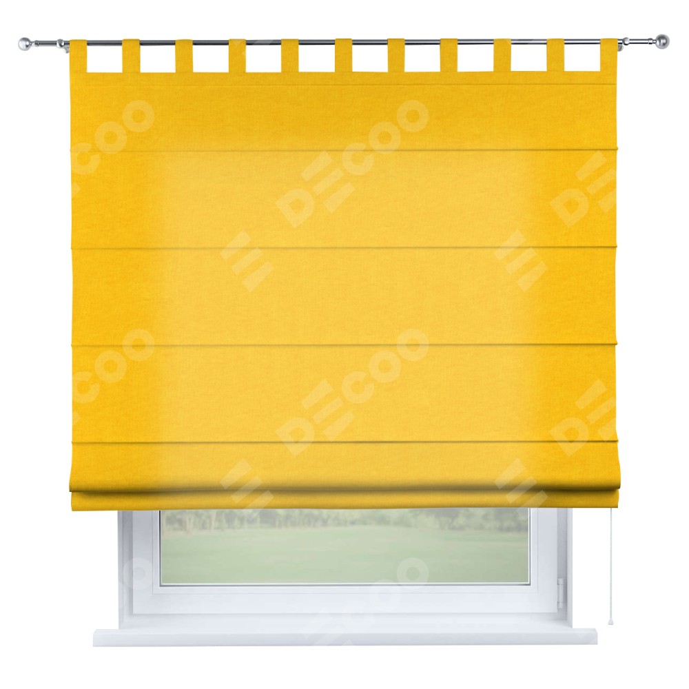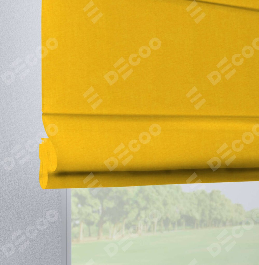 Римская штора производителя «Cortin», используется для проёма, пошита из ткани канвас желтый, артикул ткани v-344. Данная модель пошита на петлях, комплектуется на выбор круглым карнизом и подходит для монтажа на стену. Римская штора на петлях имеет простую систему регулировки высоты, отличительным преимуществом данной модели является простой способ монтажа. Достаточно повесить ее на трубу и штора готова!