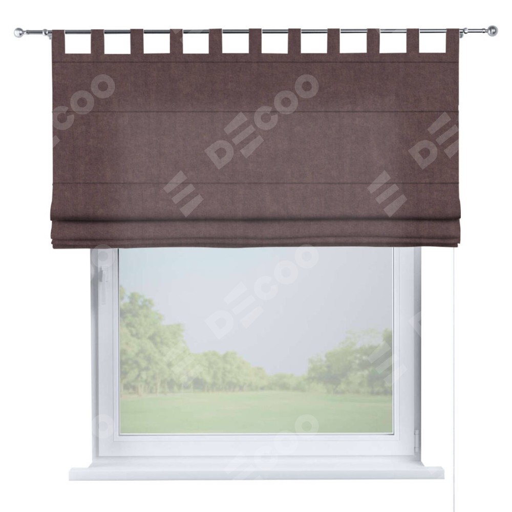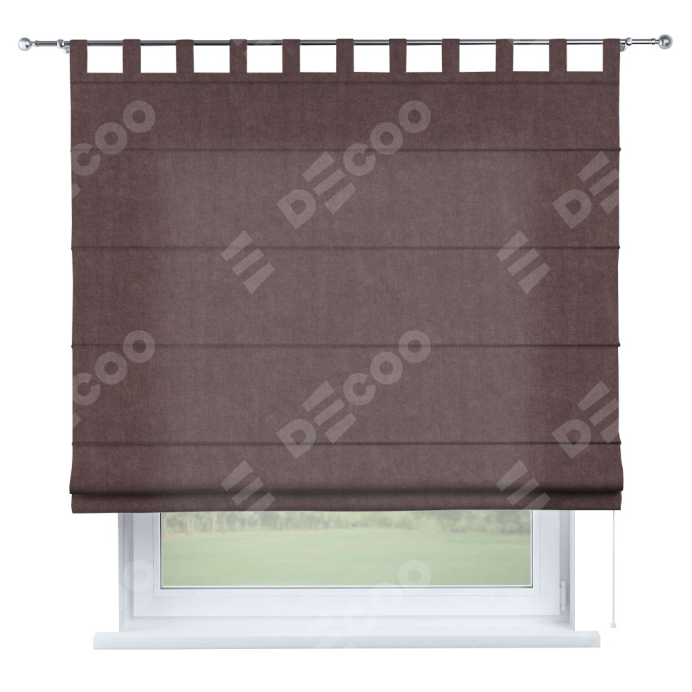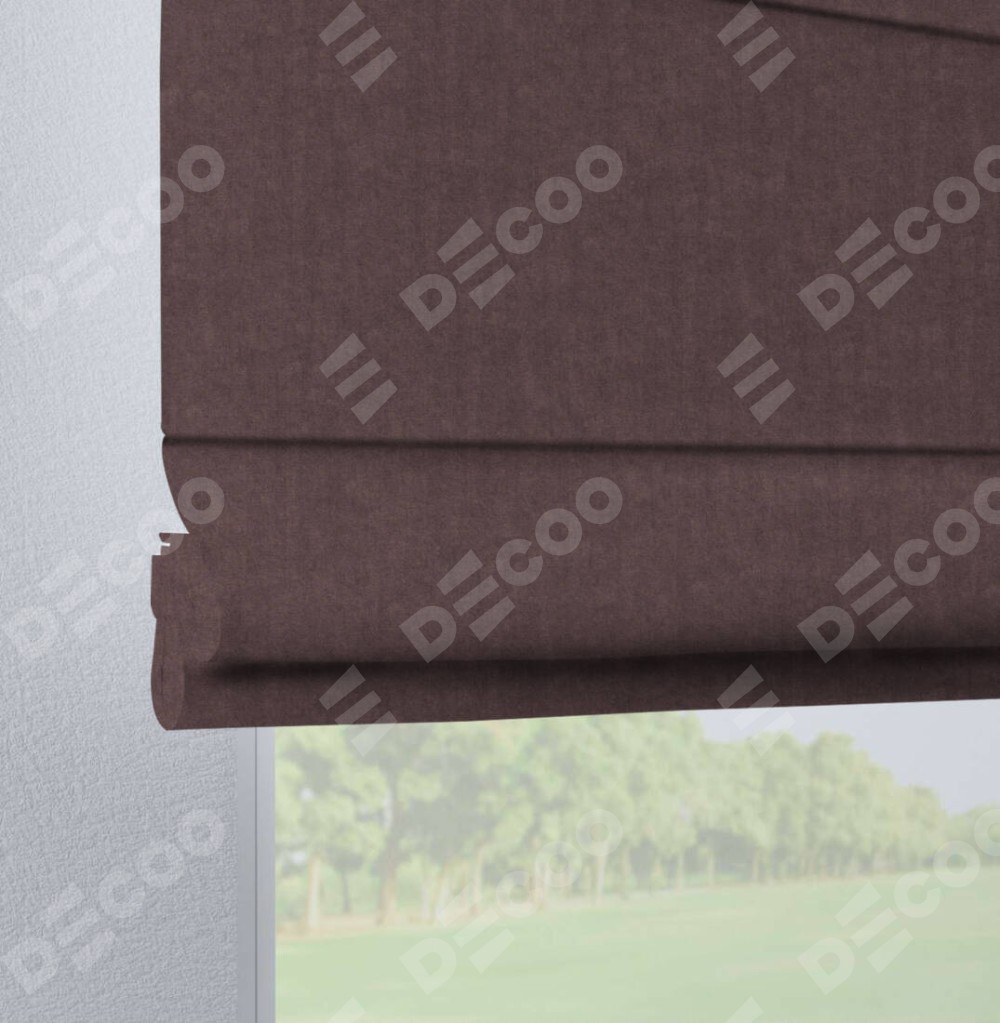 Римская штора производителя «Cortin», используется для проёма, пошита из ткани канвас махагон, артикул ткани v-37. Данная модель пошита на петлях, комплектуется на выбор круглым карнизом и подходит для монтажа на стену. Римская штора на петлях имеет простую систему регулировки высоты, отличительным преимуществом данной модели является простой способ монтажа. Достаточно повесить ее на трубу и штора готова!