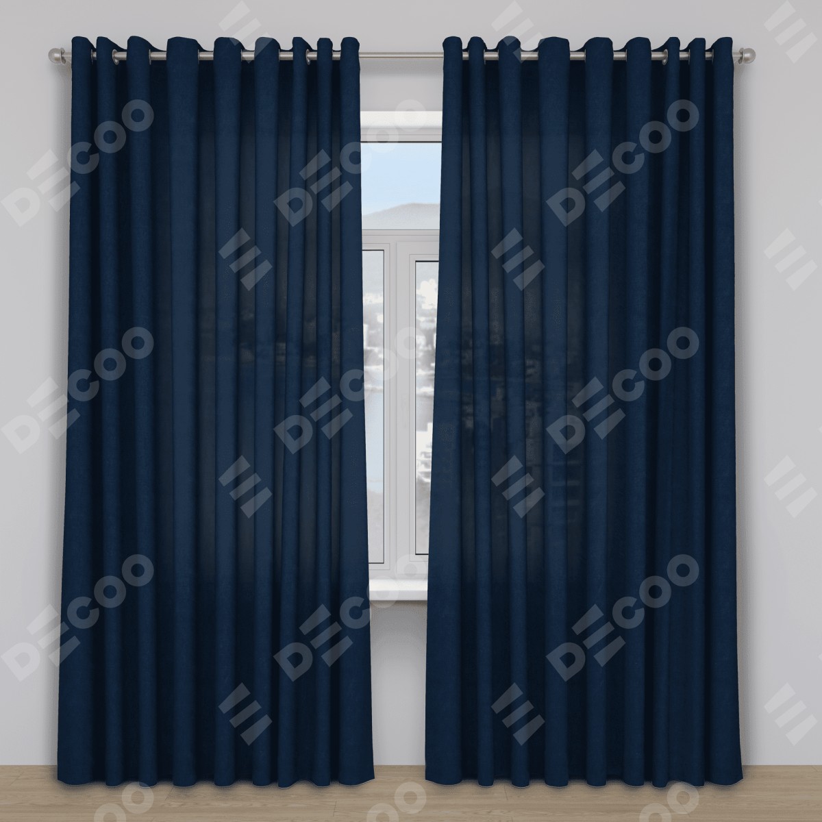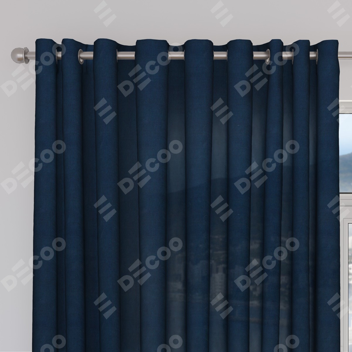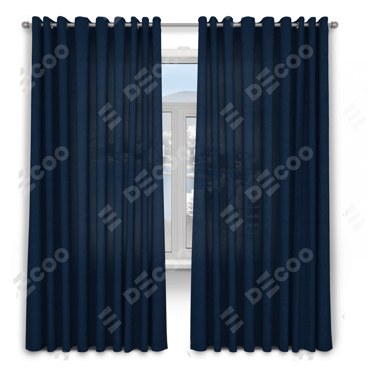 Комплект прямых штор, от производителя «Cortin», пошиты из ткани вельвет тёмно-синий, артикул ткани 14152. Данная модель пошита на люверсах, комплектуется на выбор круглым карнизом и подходит для монтажа на стену. Прямые шторы на люверсах шьются по стандарту с коэффициентом 1/2 (на 100 см. ширины проёма 200 см. ширины ткани), отличительным преимуществом данной модели является простой способ монтажа. Достаточно повесить ее на трубу и штора готова!