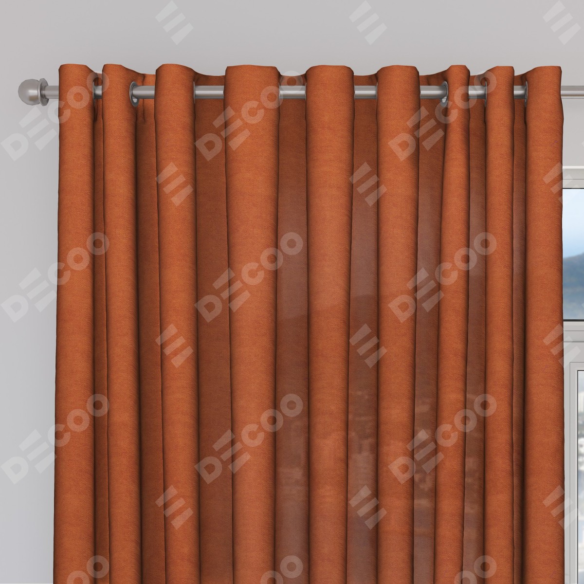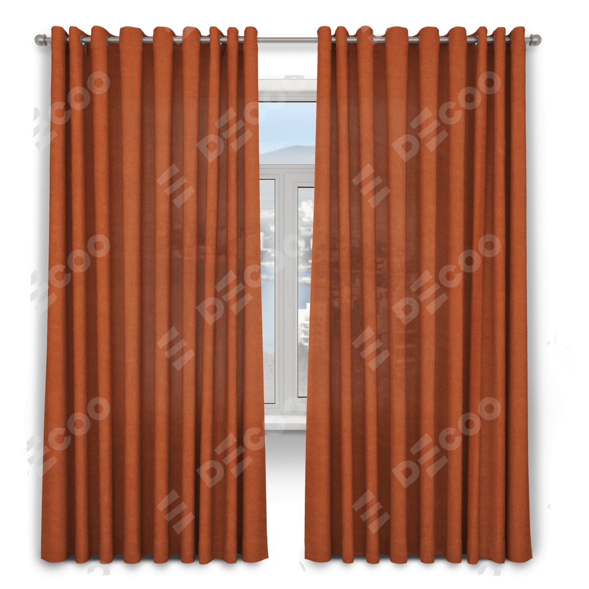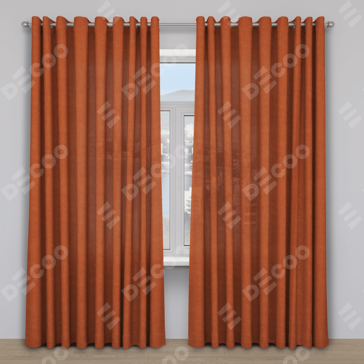 Комплект прямых штор, от производителя «Cortin», пошиты из ткани вельвет терракотовый, артикул ткани 85548. Данная модель пошита на люверсах, комплектуется на выбор круглым карнизом и подходит для монтажа на стену. Прямые шторы на люверсах шьются по стандарту с коэффициентом 1/2 (на 100 см. ширины проёма 200 см. ширины ткани), отличительным преимуществом данной модели является простой способ монтажа. Достаточно повесить ее на трубу и штора готова!