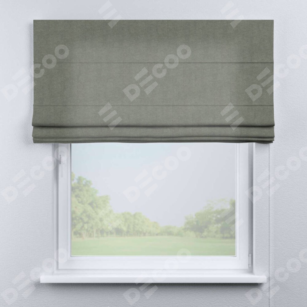 Римская штора производителя «Cortin», используется для проёма, пошита из ткани канвас сизый, артикул ткани v-1902. Имеет универсальный механизм и подходит для монтажа: на потолок, на стену и в нишу.