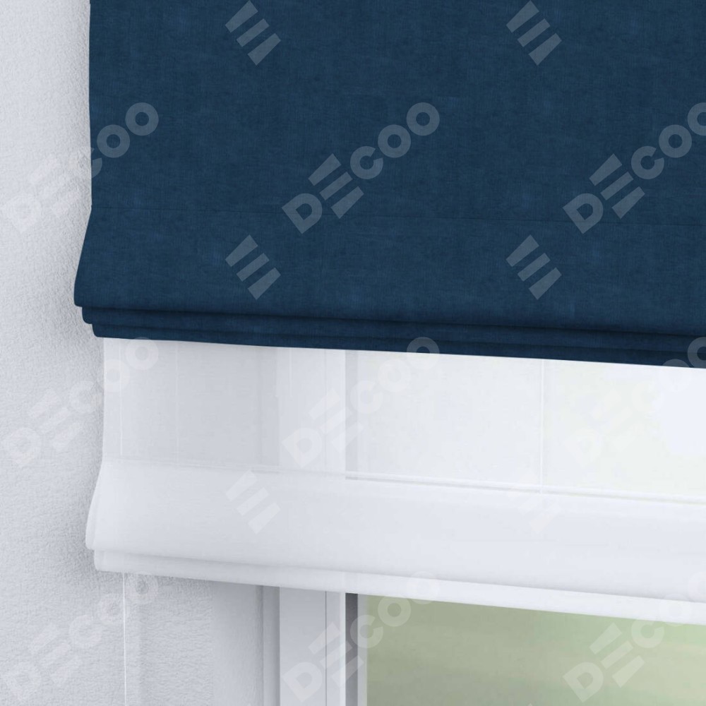 Римская штора день-ночь производителя «Cortin», используется для проёма, пошита из двух полотен, с лицевой стороны канвас синий артикул v-573, вторая ткань тюль (по стандарту комплектуется тюль белого цвета артикул V-01). Имеет универсальный механизм и подходит для монтажа: на потолок, на стену и в нишу.