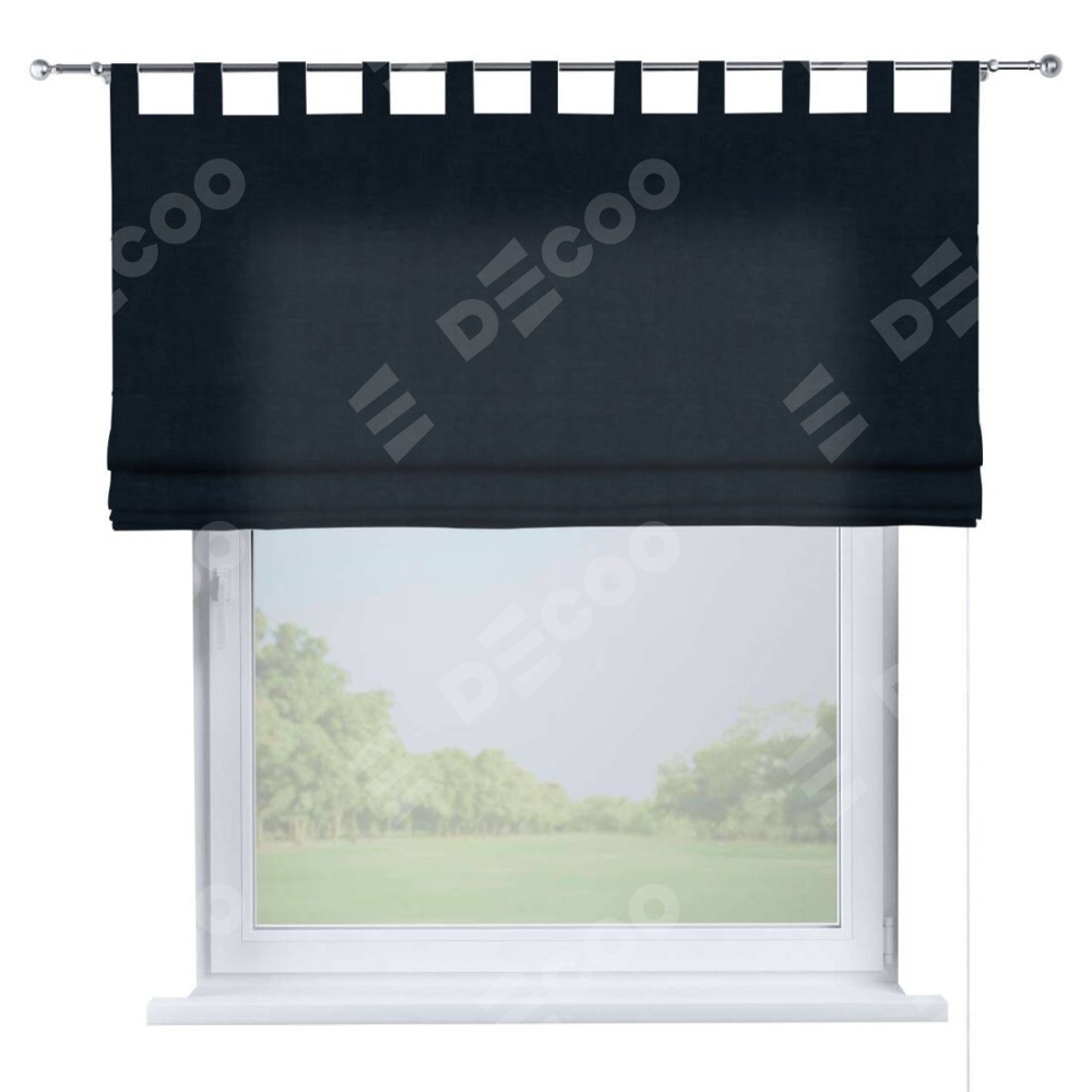 Римская штора производителя «Cortin», используется для проёма, пошита из ткани канвас тёмно-синий, артикул ткани v-206. Данная модель пошита на петлях, комплектуется на выбор круглым карнизом и подходит для монтажа на стену. Римская штора на петлях имеет простую систему регулировки высоты, отличительным преимуществом данной модели является простой способ монтажа. Достаточно повесить ее на трубу и штора готова!