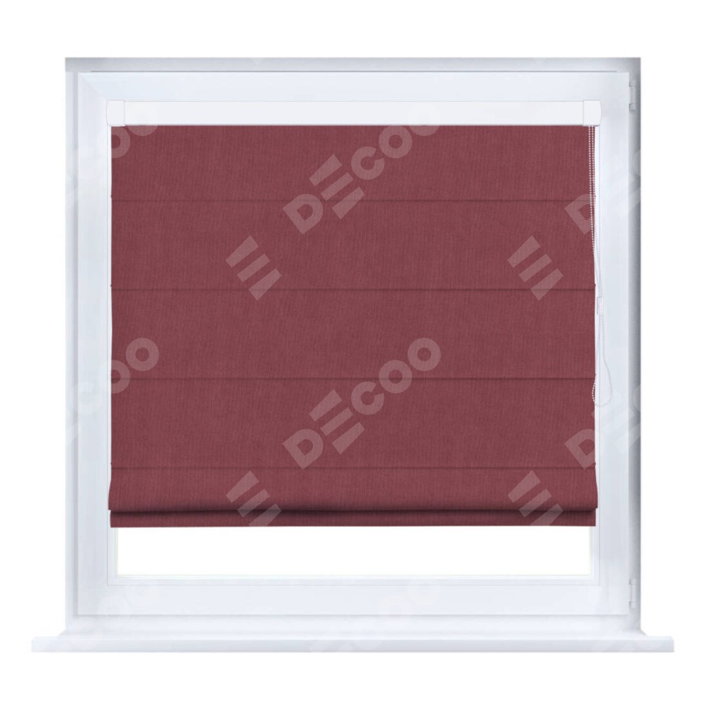 Римская штора производителя «Cortin», устанавливается на створку окна, пошита из ткани канвас ягодный, артикул v-28. Штора шьётся по индивидуальным размерам, для данного типа римской шторы возможная ширина от 35 до 150 см., высота до 250 см.