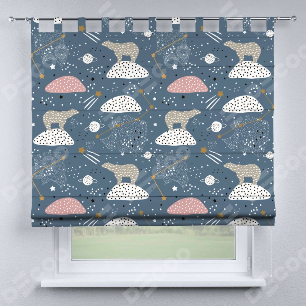 Римская штора производителя «Cortin», используется для проёма, пошита из ткани блэкаут с нанесением сублимационной печати «Белые медведи». Данная модель пошита на петлях, комплектуется на выбор круглым карнизом и подходит для монтажа на стену. Римская штора на петлях имеет простую систему регулировки высоты, отличительным преимуществом данной модели является простой способ монтажа. Достаточно повесить ее на трубу и штора готова!