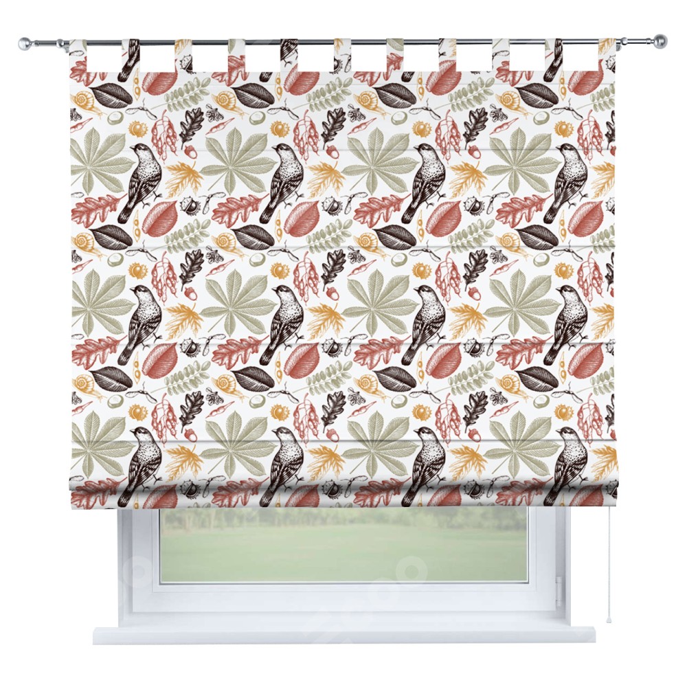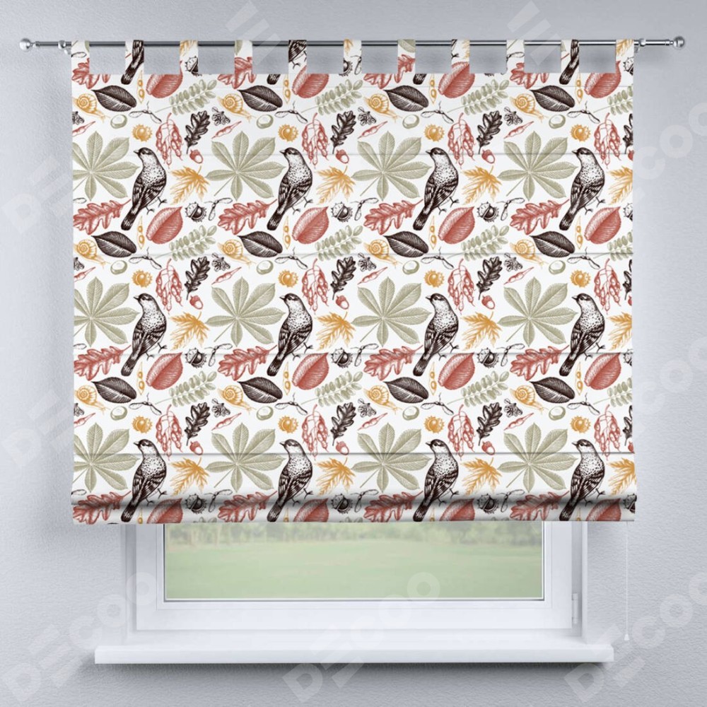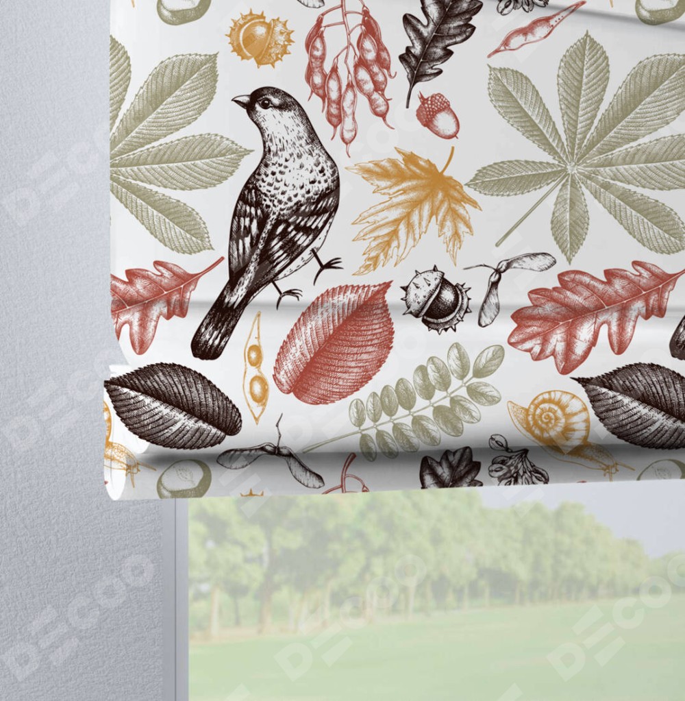 Римская штора производителя «Cortin», используется для проёма, пошита из ткани блэкаут с нанесением сублимационной печати «Краски осени». Данная модель пошита на петлях, комплектуется на выбор круглым карнизом и подходит для монтажа на стену. Римская штора на петлях имеет простую систему регулировки высоты, отличительным преимуществом данной модели является простой способ монтажа. Достаточно повесить ее на трубу и штора готова!