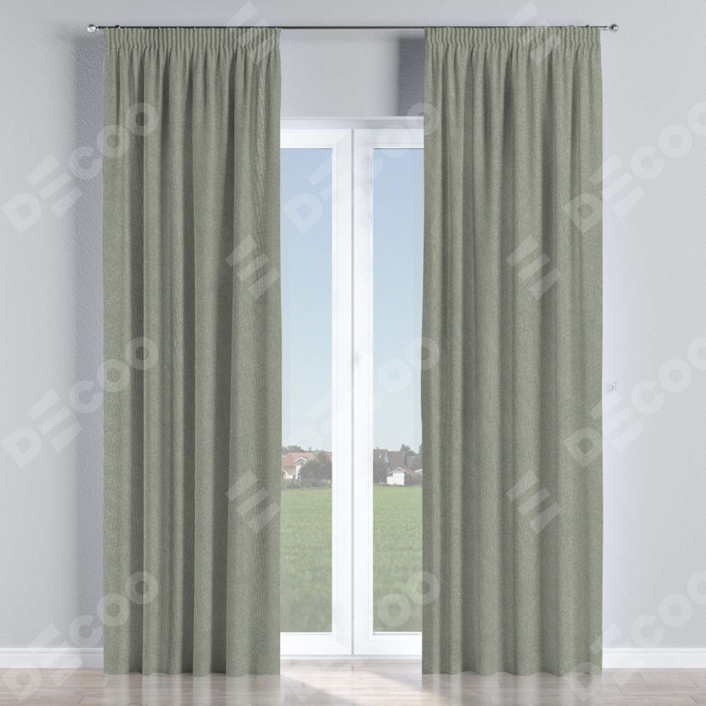 Комплект прямых штор, от производителя «Cortin», пошиты из ткани лён димаут серый, артикул ткани 91009. С изнаночной стороны в верхней части штор пристрачивается шторная лента с декоративными складками «Карандаш». Для создания элегантных складок прямые шторы шьются по стандарту с коэффициентом 1:2 (на 100 см. ширины проёма 200 см. ширины ткани).