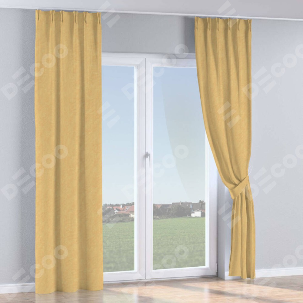 Комплект прямых штор, от производителя «Cortin», пошиты из ткани канвас абрикосовый, артикул ткани v-448. С изнаночной стороны в верхней части штор пристрачивается шторная лента с декоративными складками «Кустик». Для создания элегантных складок прямые шторы шьются по стандарту с коэффициентом 1:2 (на 100 см. ширины проёма 200 см. ширины ткани).