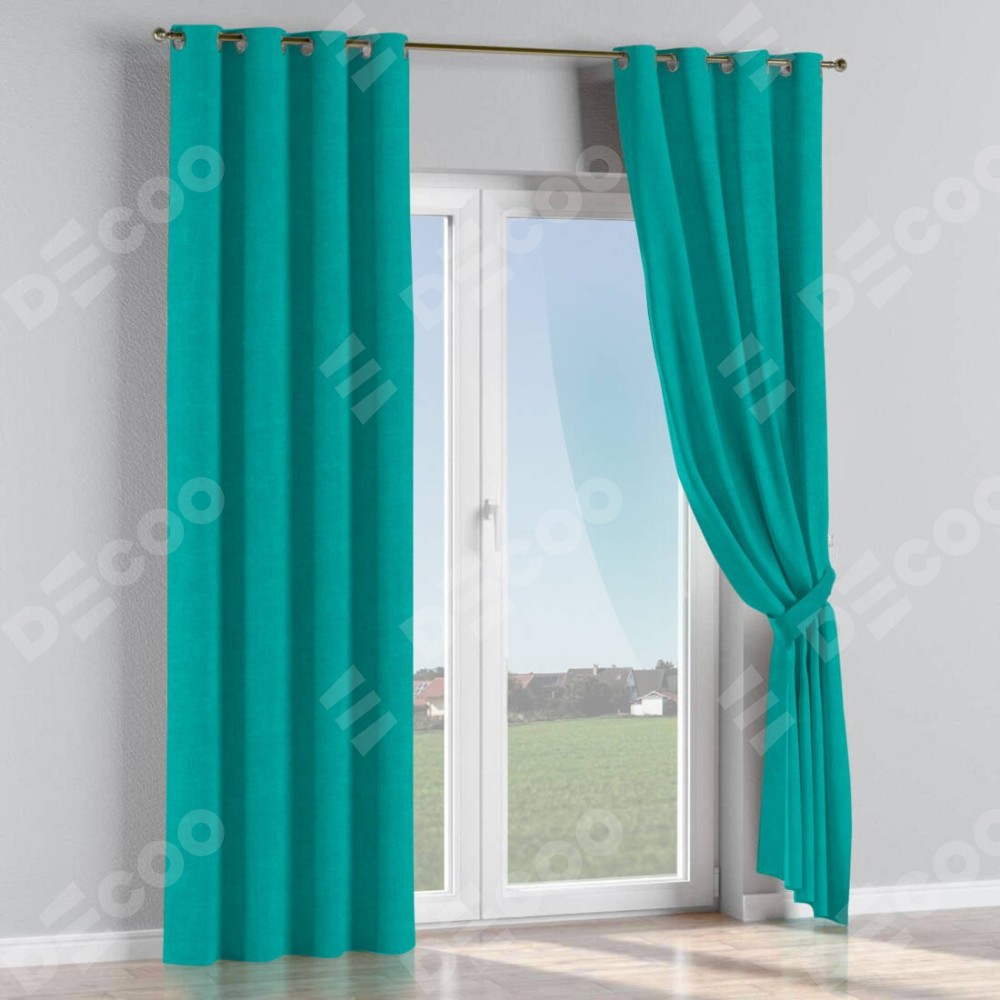 Комплект прямых штор, от производителя «Cortin», пошиты из ткани канвас бирюзовый, артикул ткани v-1048. Данная модель пошита на люверсах, комплектуется на выбор круглым карнизом и подходит для монтажа на стену или потолок. Прямые шторы на люверсах шьются по стандарту с коэффициентом 1/2 (на 100 см. ширины проёма 200 см. ширины ткани), отличительным преимуществом данной модели является простой способ монтажа. Достаточно повесить ее на трубу и штора готова!