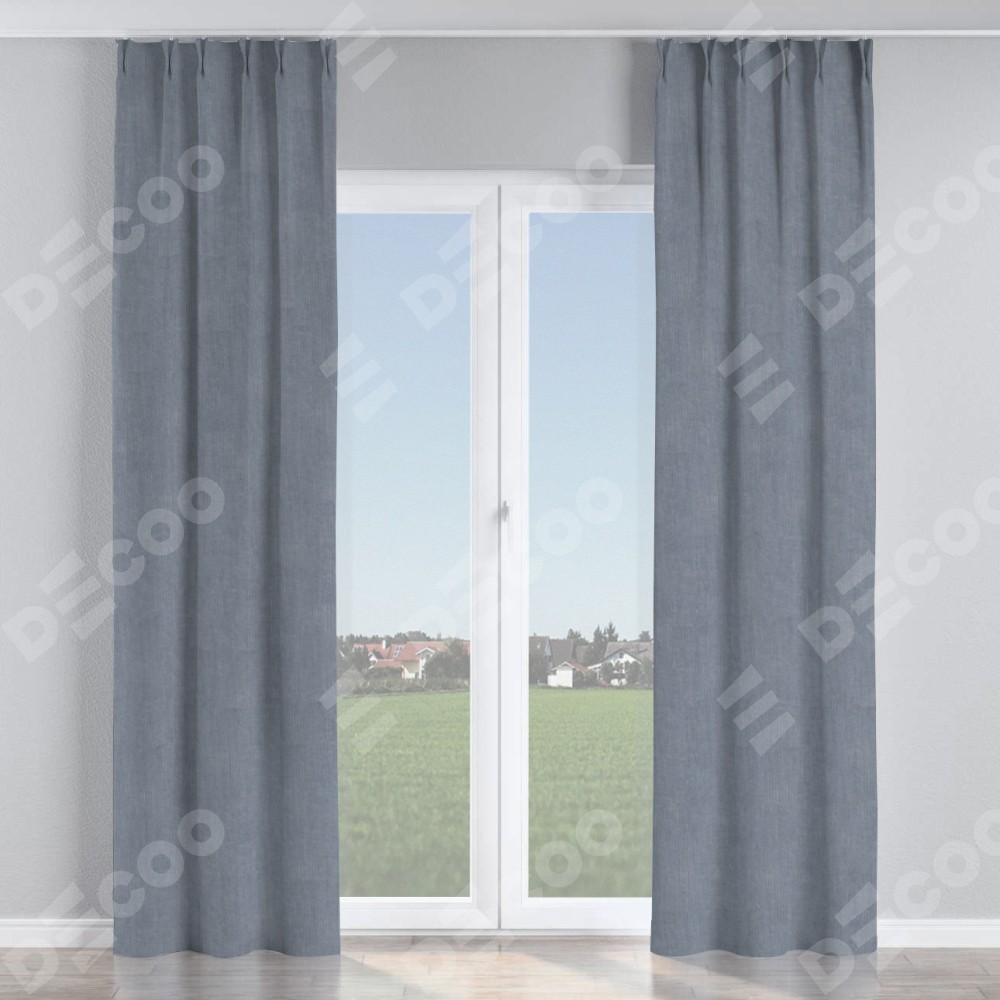 Комплект прямых штор, от производителя «Cortin», пошиты из ткани канвас васильковый, артикул ткани v-203. С изнаночной стороны в верхней части штор пристрачивается шторная лента с декоративными складками «Кустик». Для создания элегантных складок прямые шторы шьются по стандарту с коэффициентом 1:2 (на 100 см. ширины проёма 200 см. ширины ткани).
