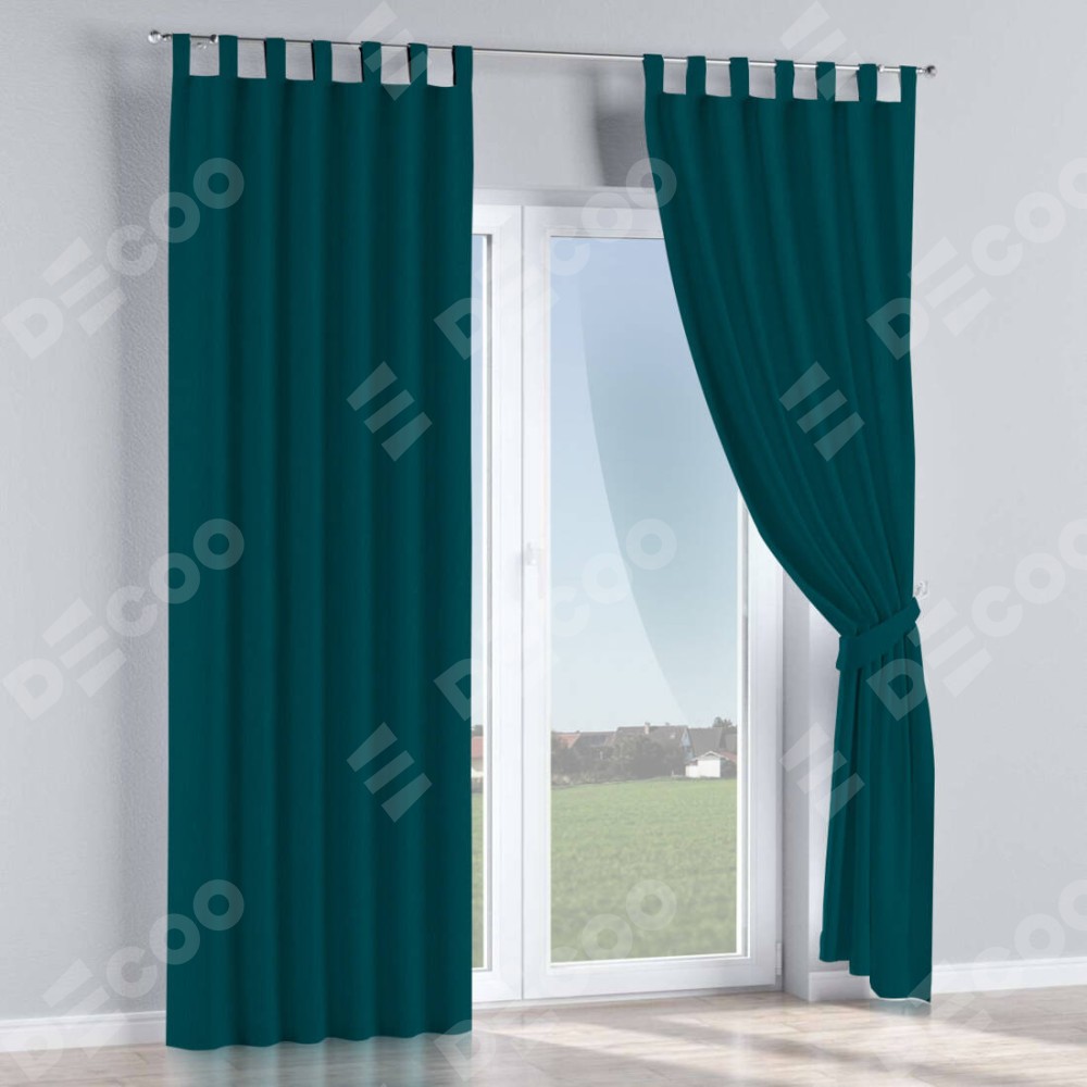 Комплект прямых штор, от производителя «Cortin», пошиты из ткани канвас изумрудный, артикул ткани v-12487. Данная модель пошита на петлях, комплектуется на выбор круглым карнизом и подходит для монтажа на стену или потолок. Прямые шторы на петлях шьются по стандарту с коэффициентом 1/2 (на 100 см. ширины проёма 200 см. ширины ткани), отличительным преимуществом данной модели является простой способ монтажа. Достаточно повесить ее на трубу и штора готова!