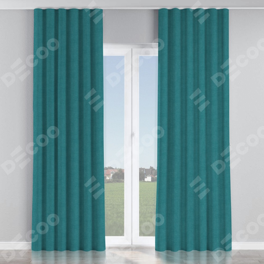 Комплект прямых штор, от производителя «Cortin», пошиты из ткани канвас ментоловый, артикул ткани v-114. С изнаночной стороны в верхней части штор пристрачивается шторная лента с декоративными складками «Волна». Для создания элегантных складок прямые шторы шьются по стандарту с коэффициентом 1:2 (на 100 см. ширины проёма 200 см. ширины ткани).